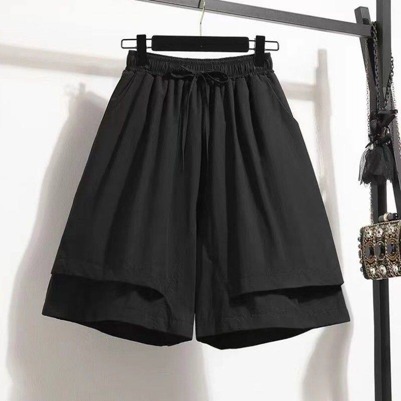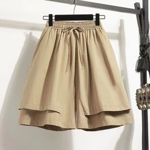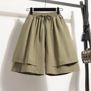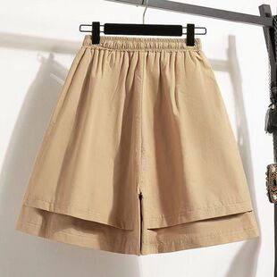 纯色五分短裤 裤 休闲松紧腰系带显瘦遮肉假两件阔腿裤 夏季 女 裙新款