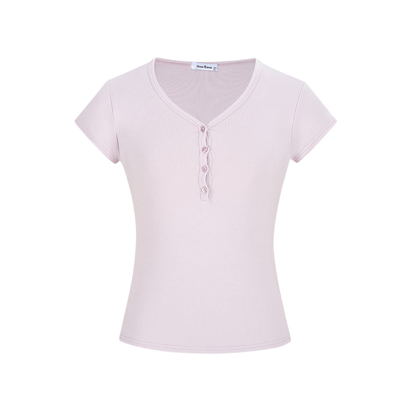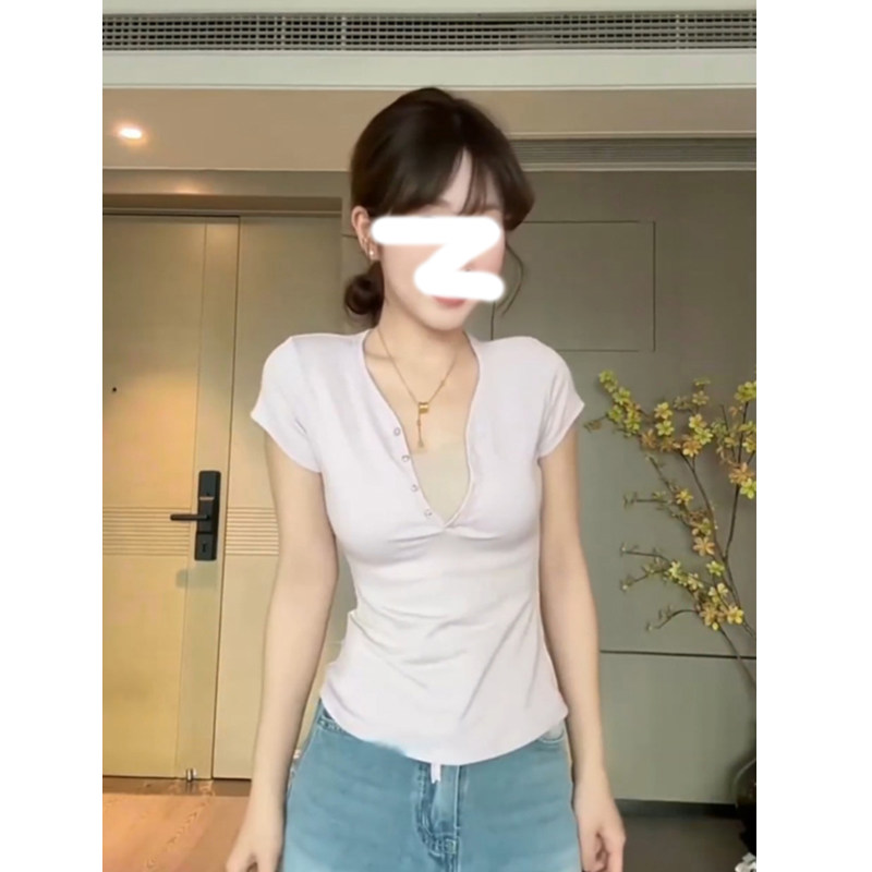 辣妹v领短袖 短款 t恤夏季 修身 上衣 2026新款 MosesQueen魔西女王美式