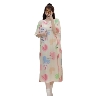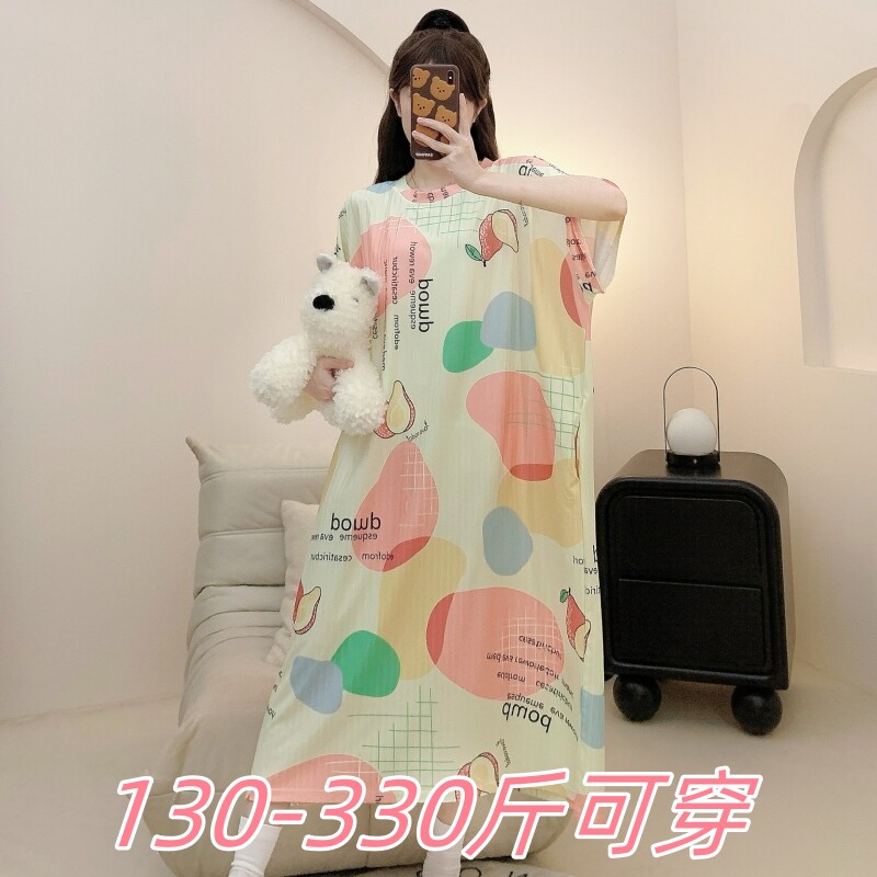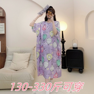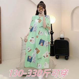2025夏季 350斤冰丝睡裙女胖MM200加肥宽松印花孕妇睡裙女 特大码