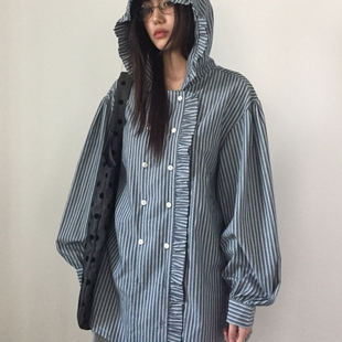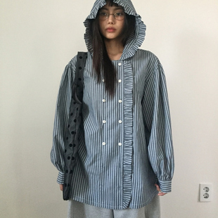 衬衫 Vavu水洗牛仔长袖 贝壳扣设计感贴袋衬衣薄外套 口袋可挂件