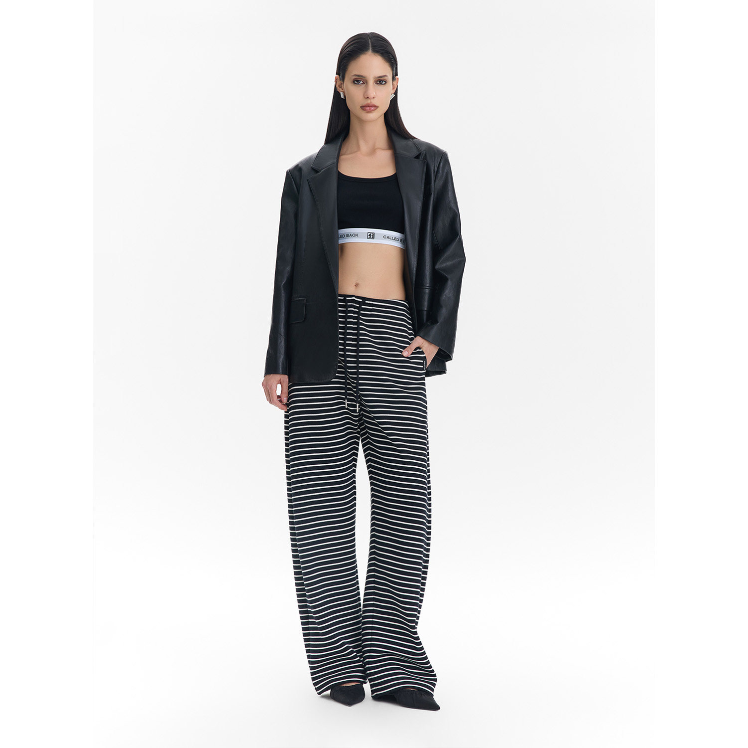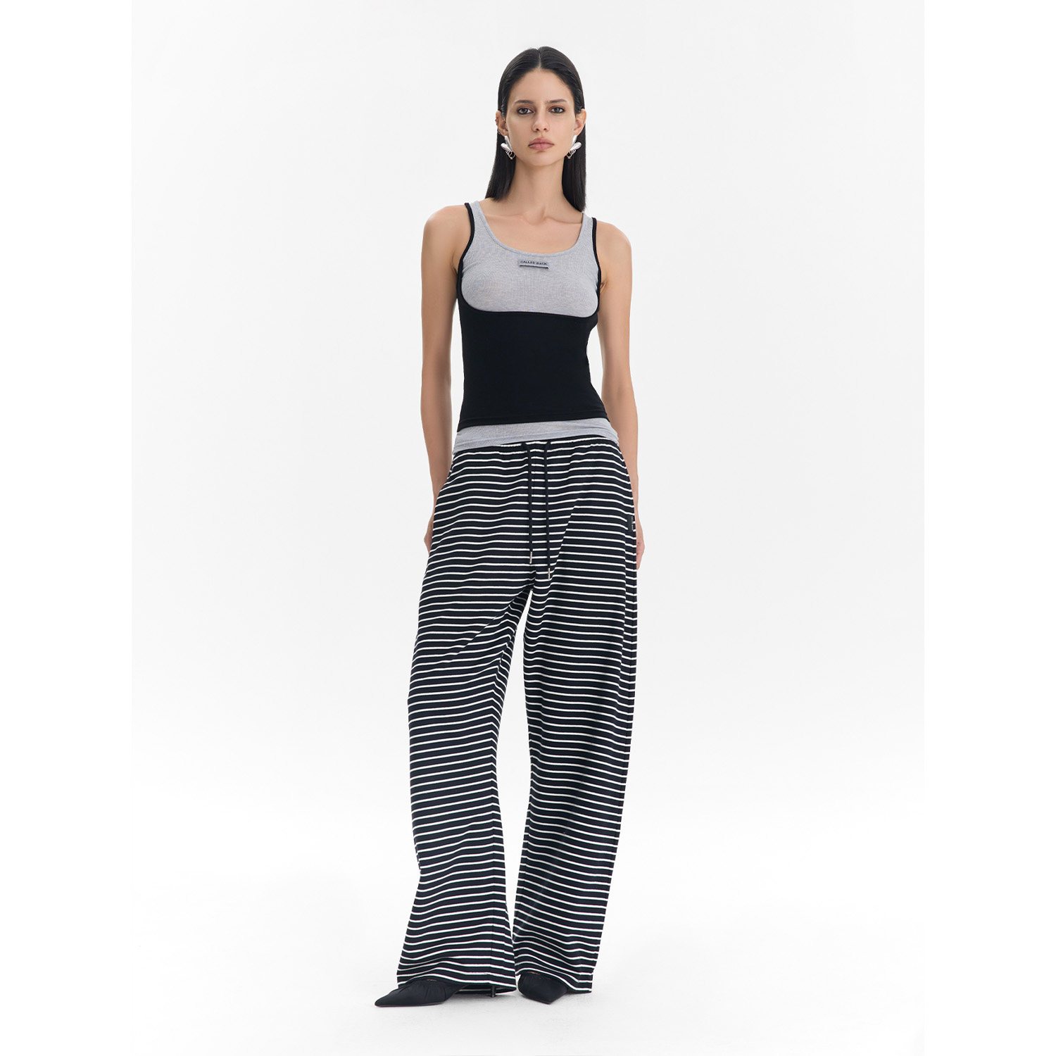 女2026春夏新款 CalledBack阔腿休闲裤 条纹抽绳长裤 李一桐同款
