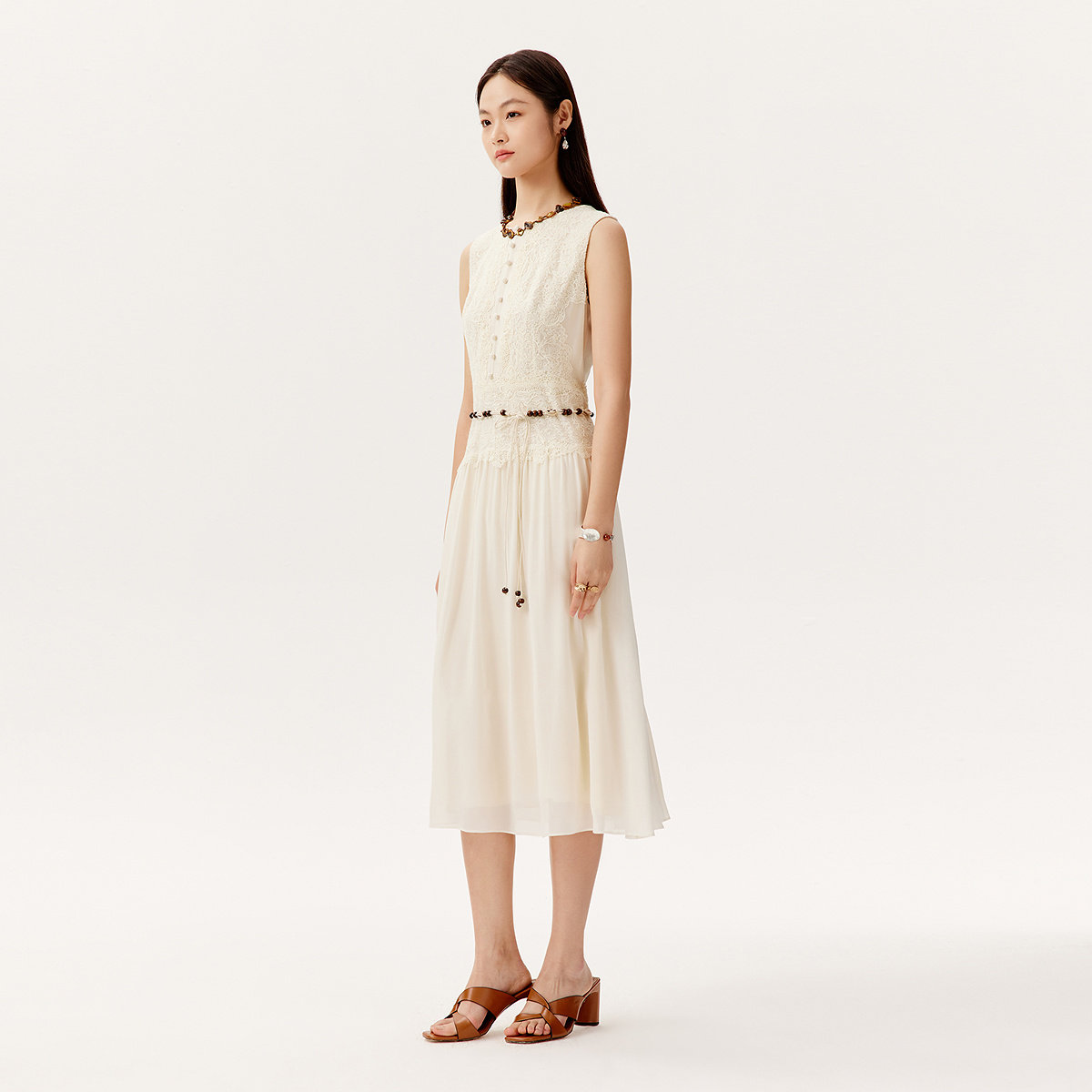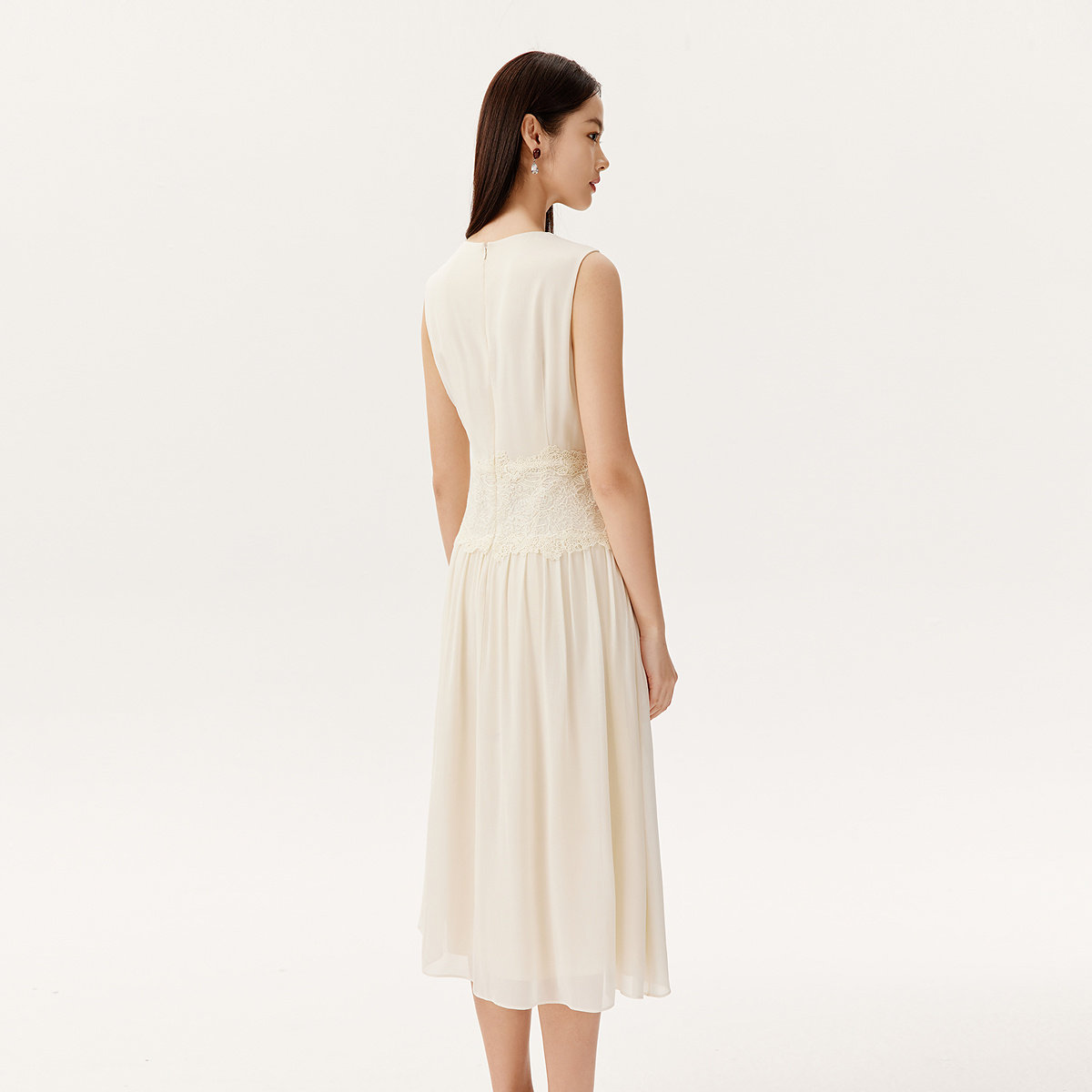 连衣裙女 桑蚕丝定位刺绣蕾丝花片无袖 VGRASS维格娜丝夏季 新款