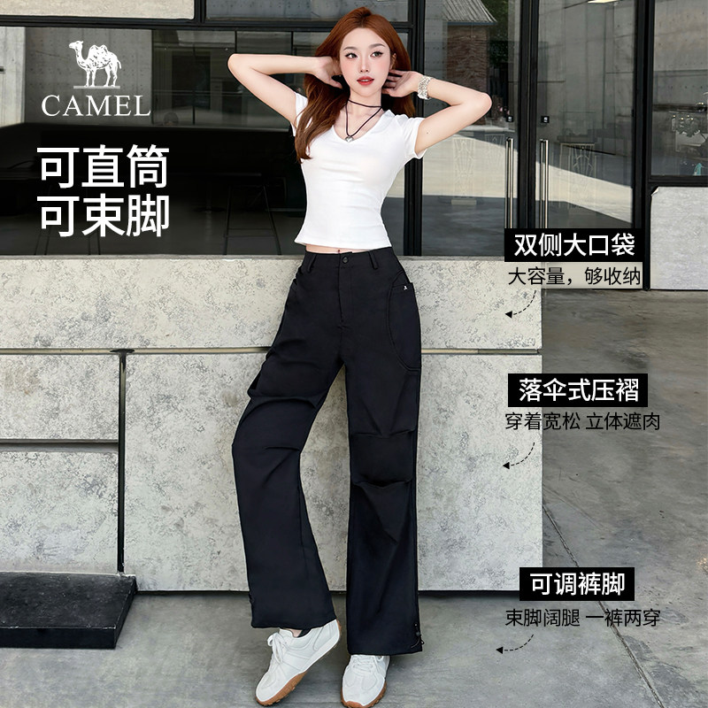 2025春秋新款 裤 直筒束脚抽绳休闲伞兵裤 女阔腿裤 骆驼女装 长款 工装