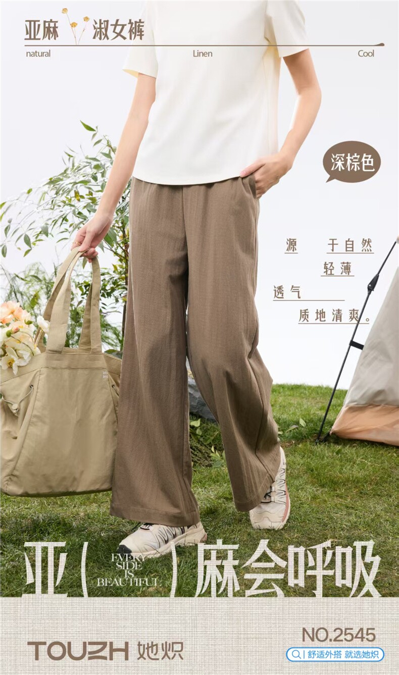 夏高腰显瘦宽松新款 薄款 直筒休闲垂感防晒 女裤 她炽2545亚麻阔裤