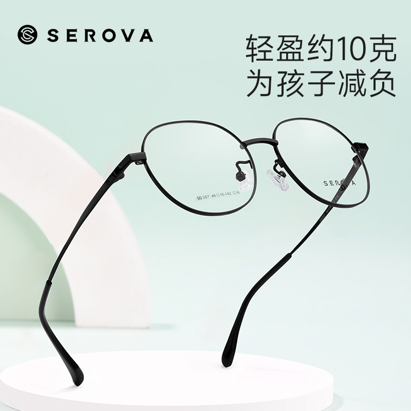施洛华儿童眼镜框男女青少年近视初中学生配镜散光钛架圆框SG007