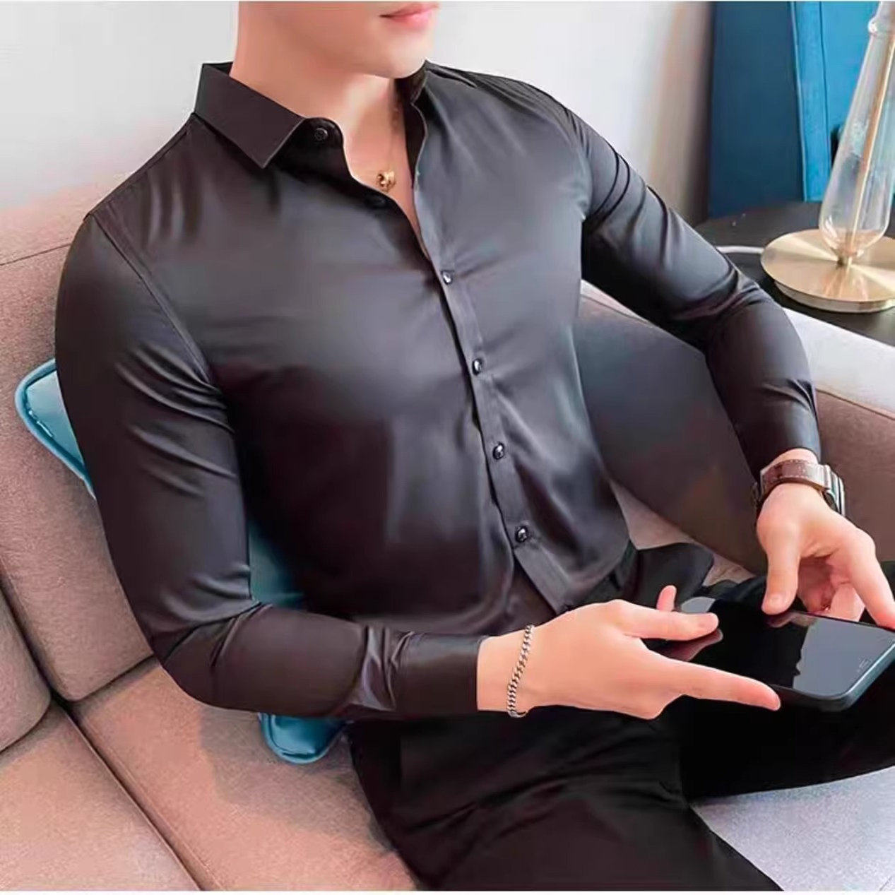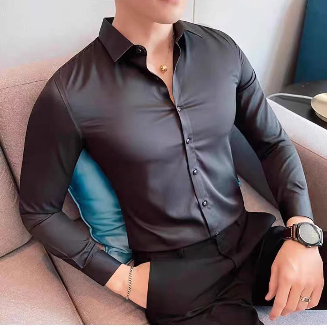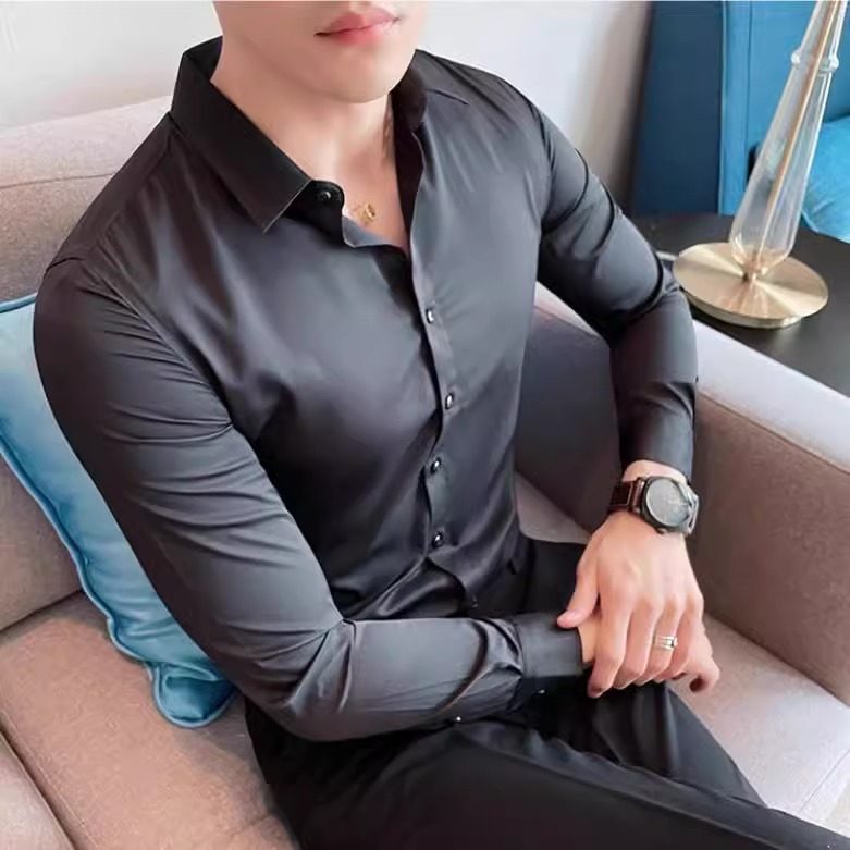 春季 优品 新款 2025春秋男韩版 衬衫 潮流冰丝休闲纯色长袖 断码