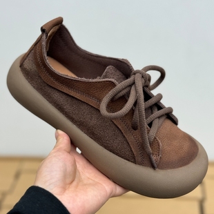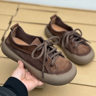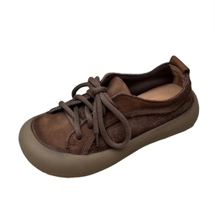 森系舒适中老年女鞋 手工真皮复古妈妈鞋 圆头休闲女单鞋 平底鞋 新款