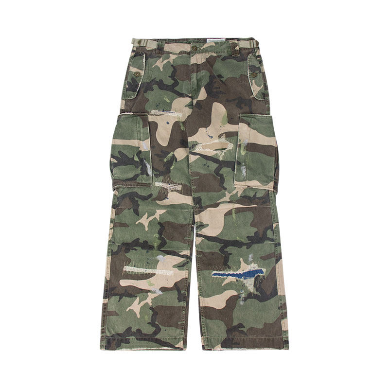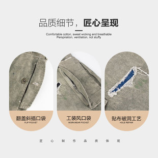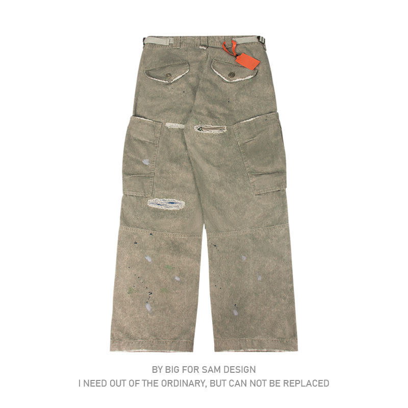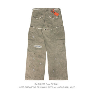 直筒情侣休闲军裤 裤 复古泼墨重磅做旧口袋破坏工装 BIGFORSAM美式
