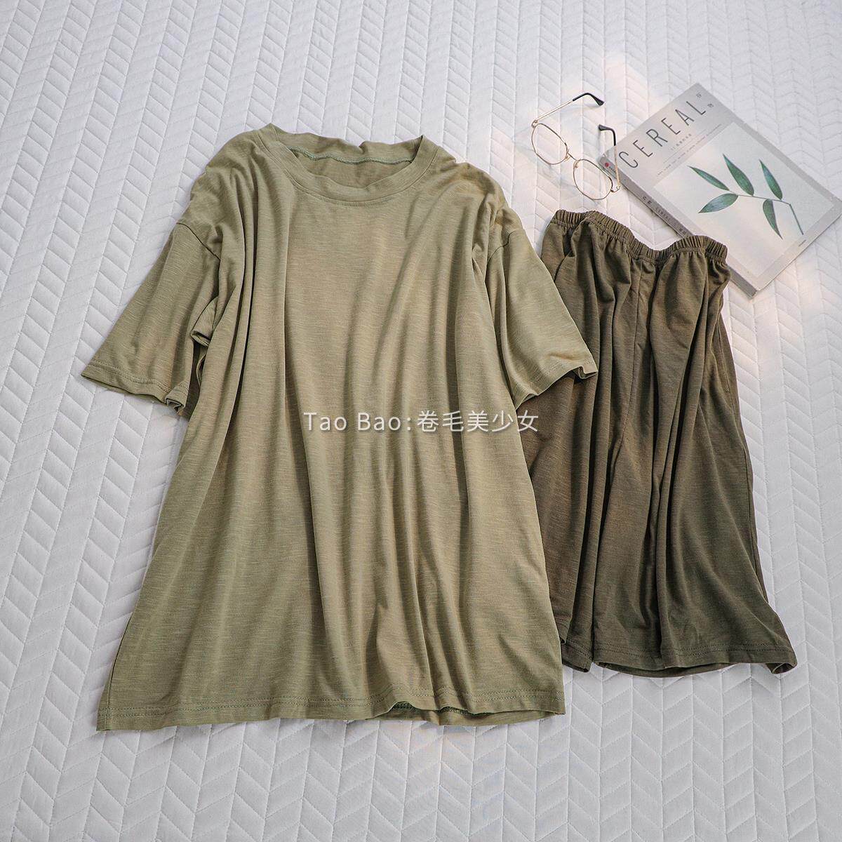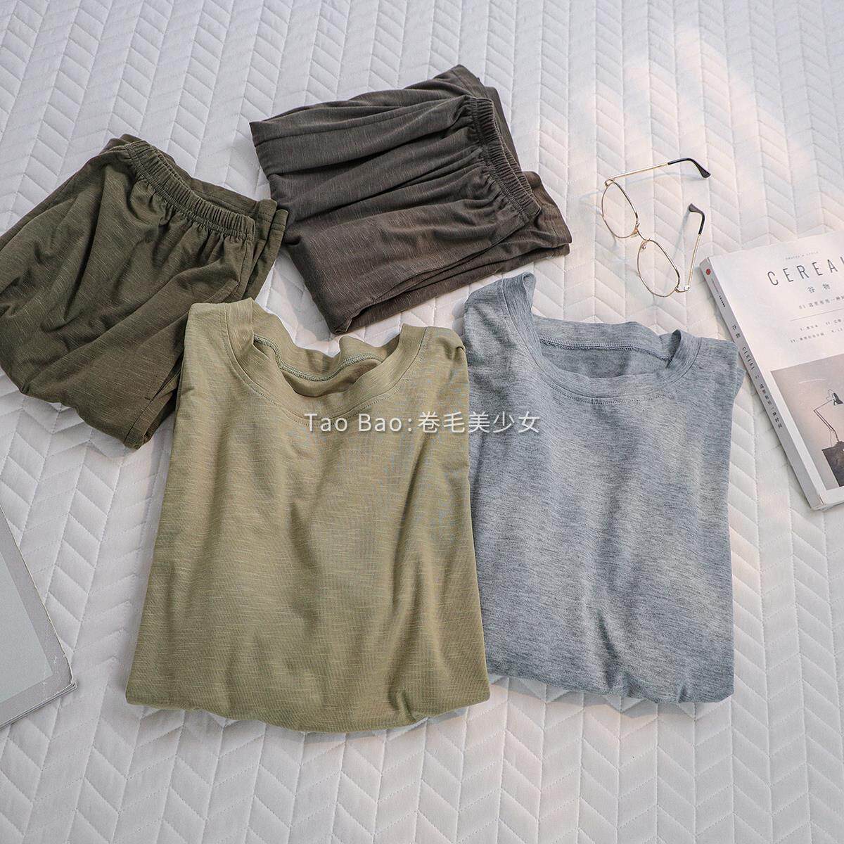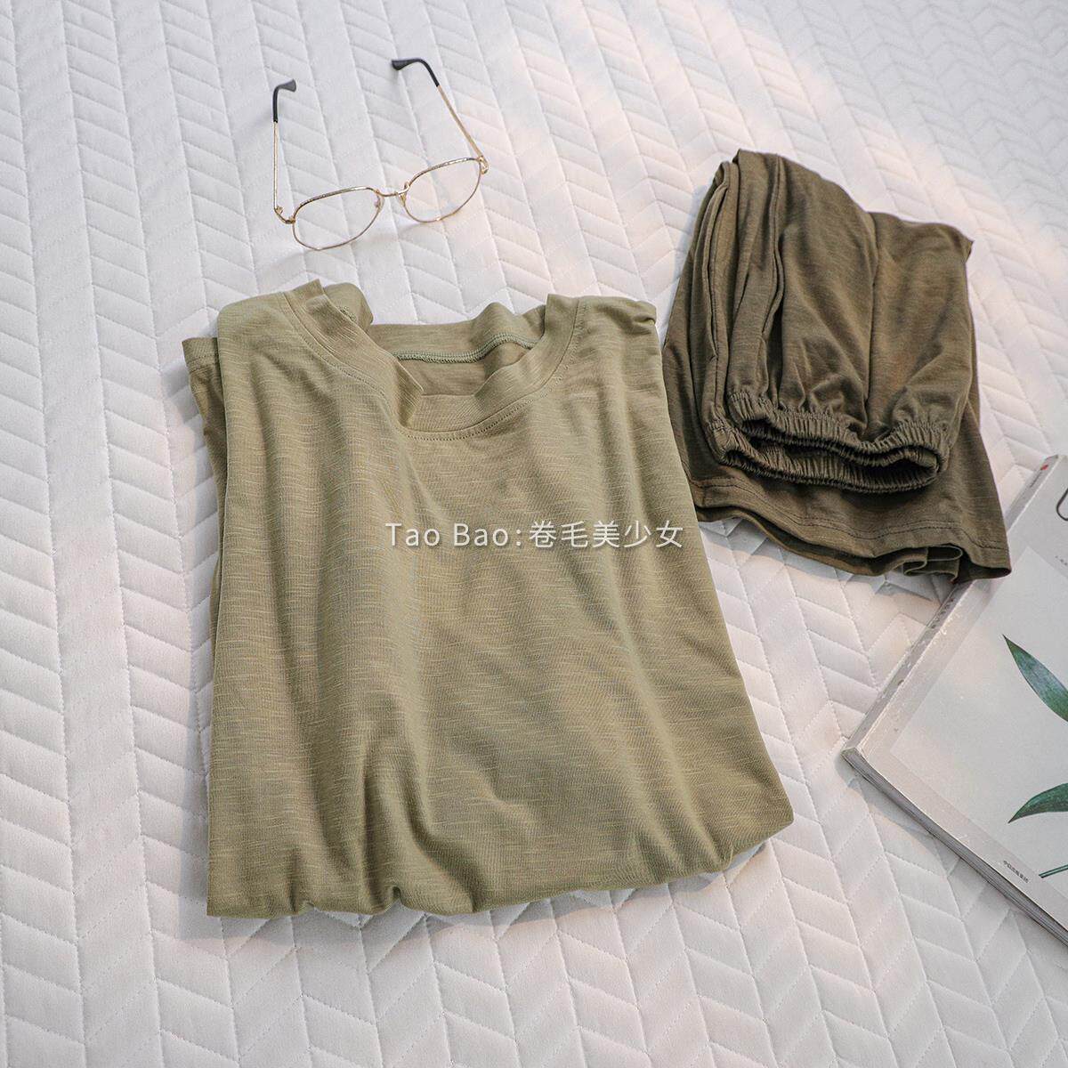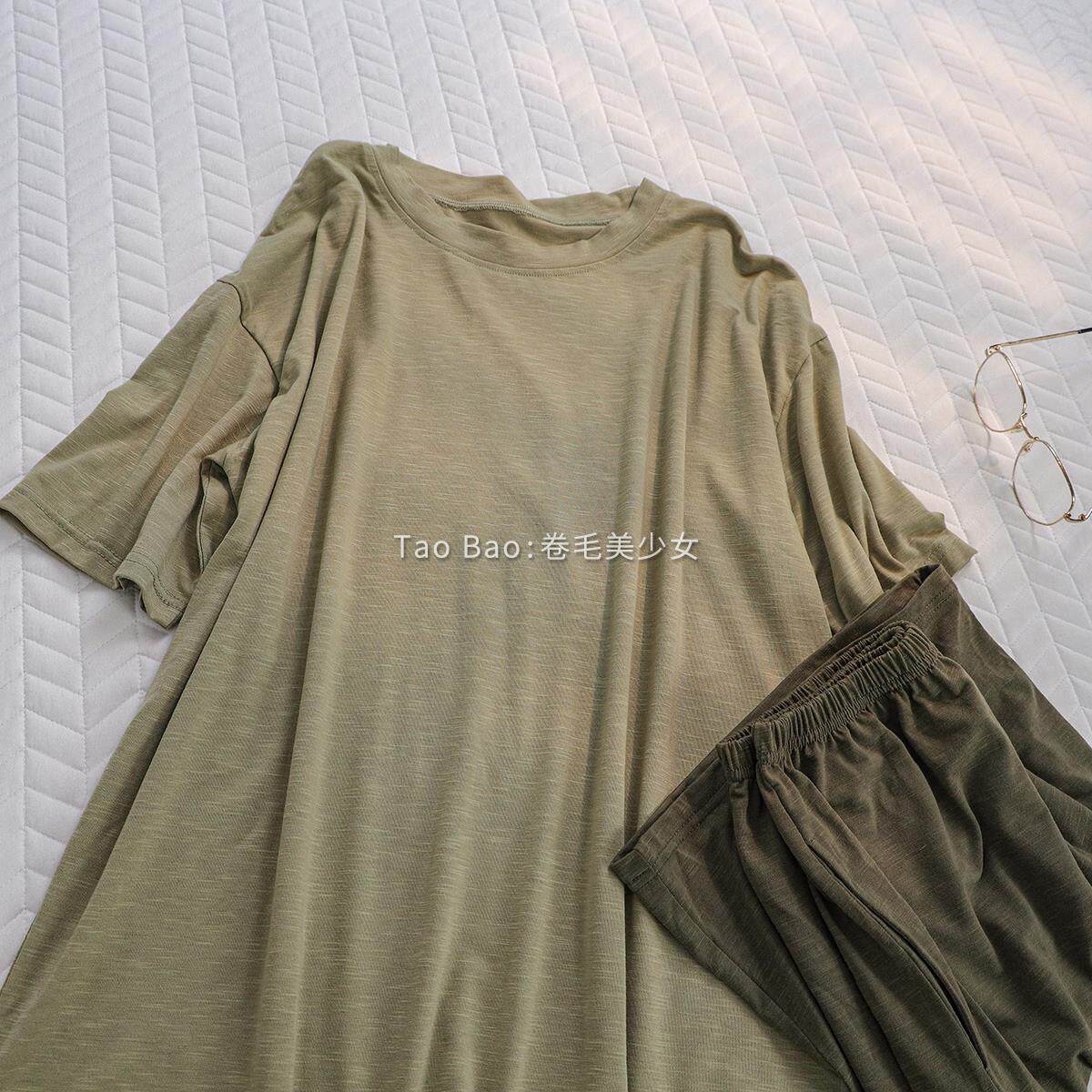 家居服 睡衣男女士森系绿套装 ins风纯色简约圆领夏季 竹节情侣短袖