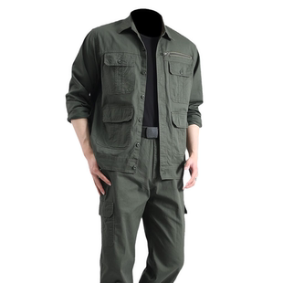 纯棉电焊防烫耐磨工装 夏季 男士 工作服套装 户外工地建筑劳保服 薄款