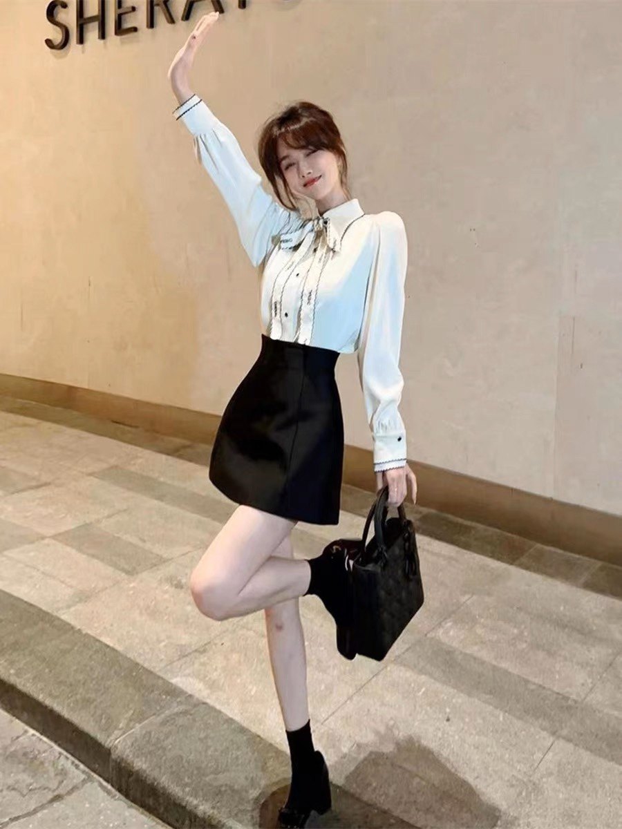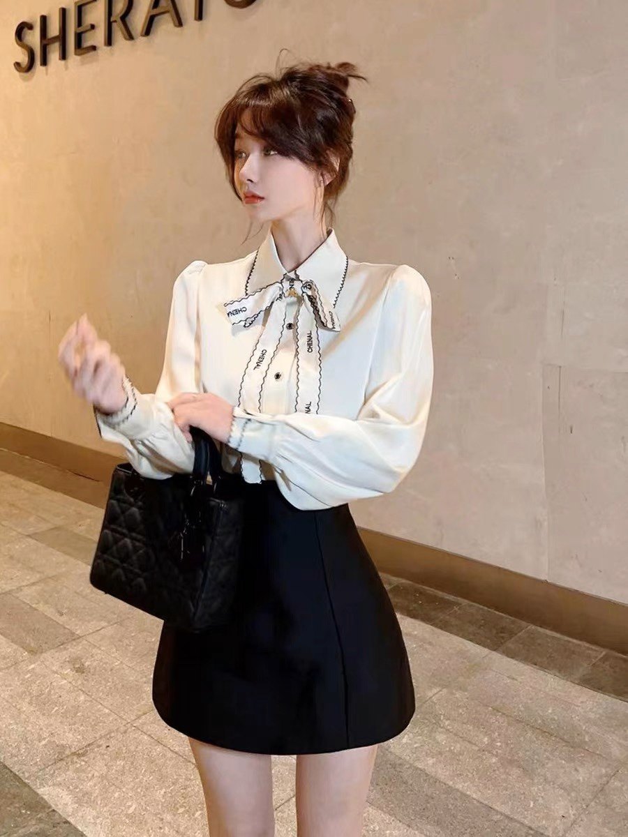 波浪边蝴蝶结衬衫 轻奢风法式 高级感衬衣上衣 正品 卡卡女装