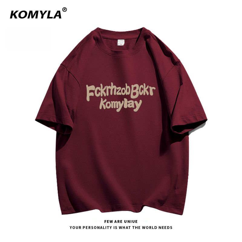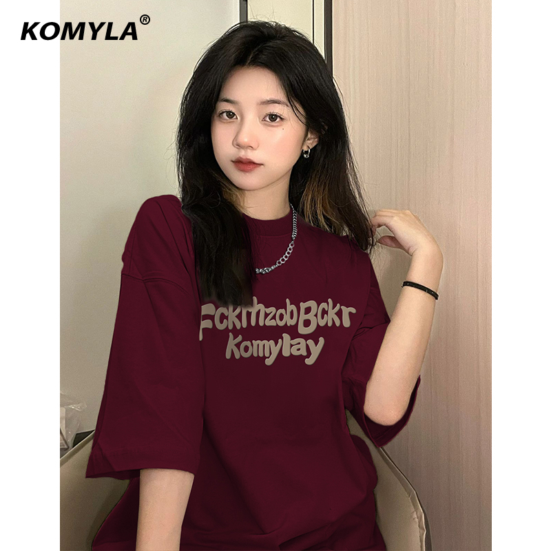 上衣 ins小众新款 盐系潮牌字母酒红色短袖 t恤女学生春夏宽松情侣装