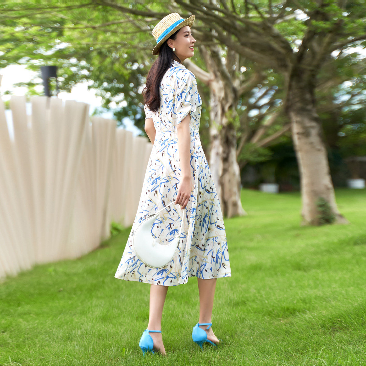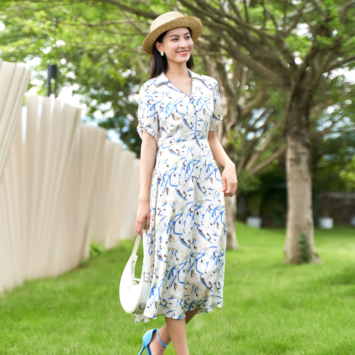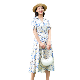 撞色印花V领显瘦气质连衣裙1D14L3012 时尚 歌蒂诗夏季 专柜新款