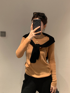 修身 长袖 显瘦百搭上衣 白色圆领针织毛衣女内搭打底衫 2026秋冬新品