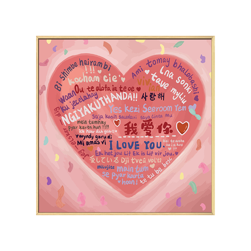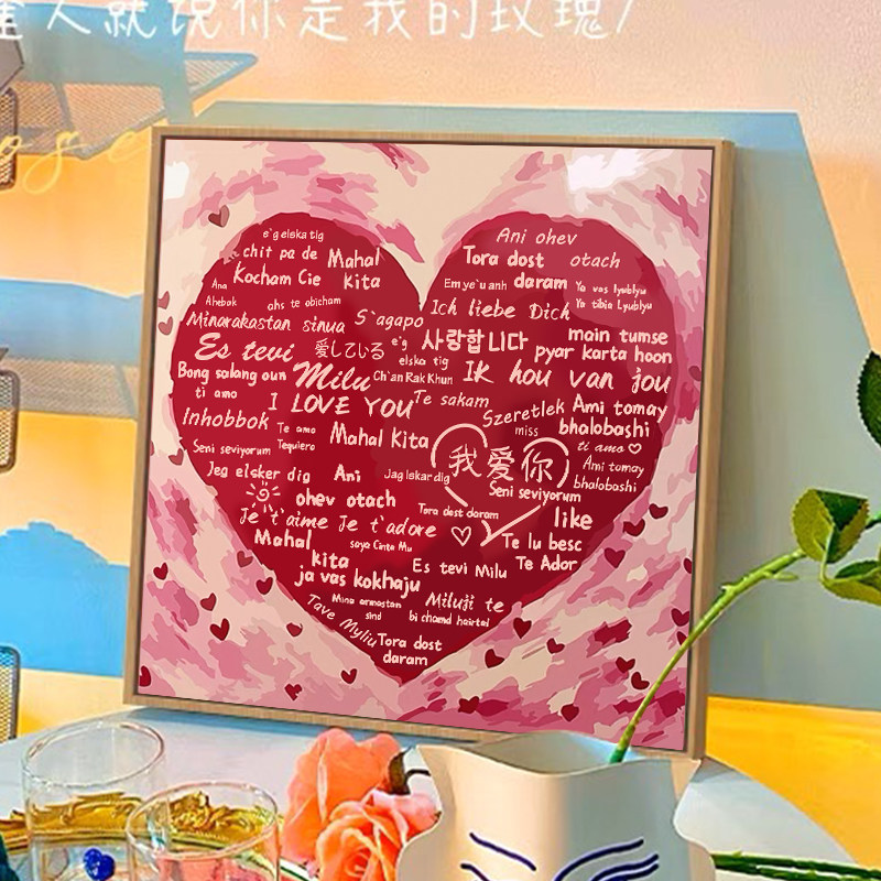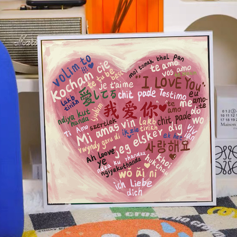 100种语言我爱你情侣数字油画diy填充色手工七夕礼物丙烯画装 饰画