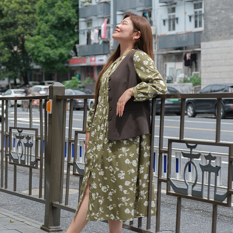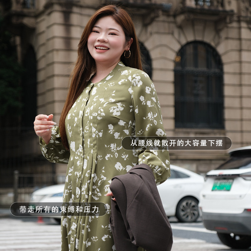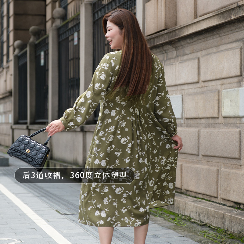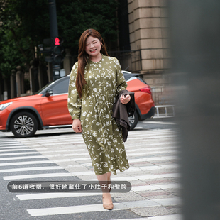 美丽客栈印花连衣裙气质轻奢高级感大码 胖MM显瘦遮肚度假裙子 女装
