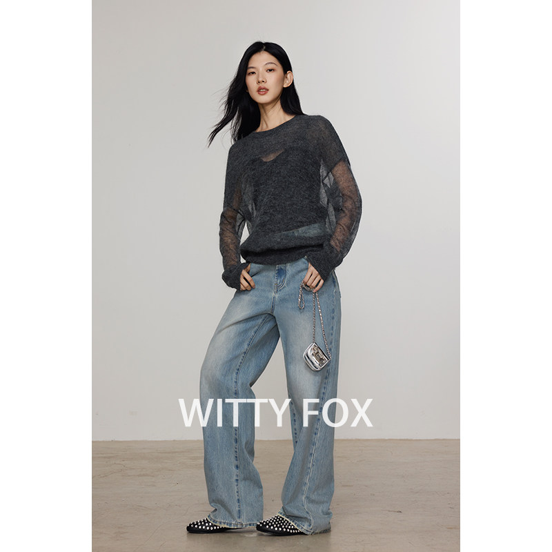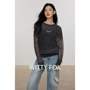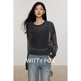 WITTYFOX意大利进口慵懒时髦透视感宽松廓形马海毛针织毛衣罩衫