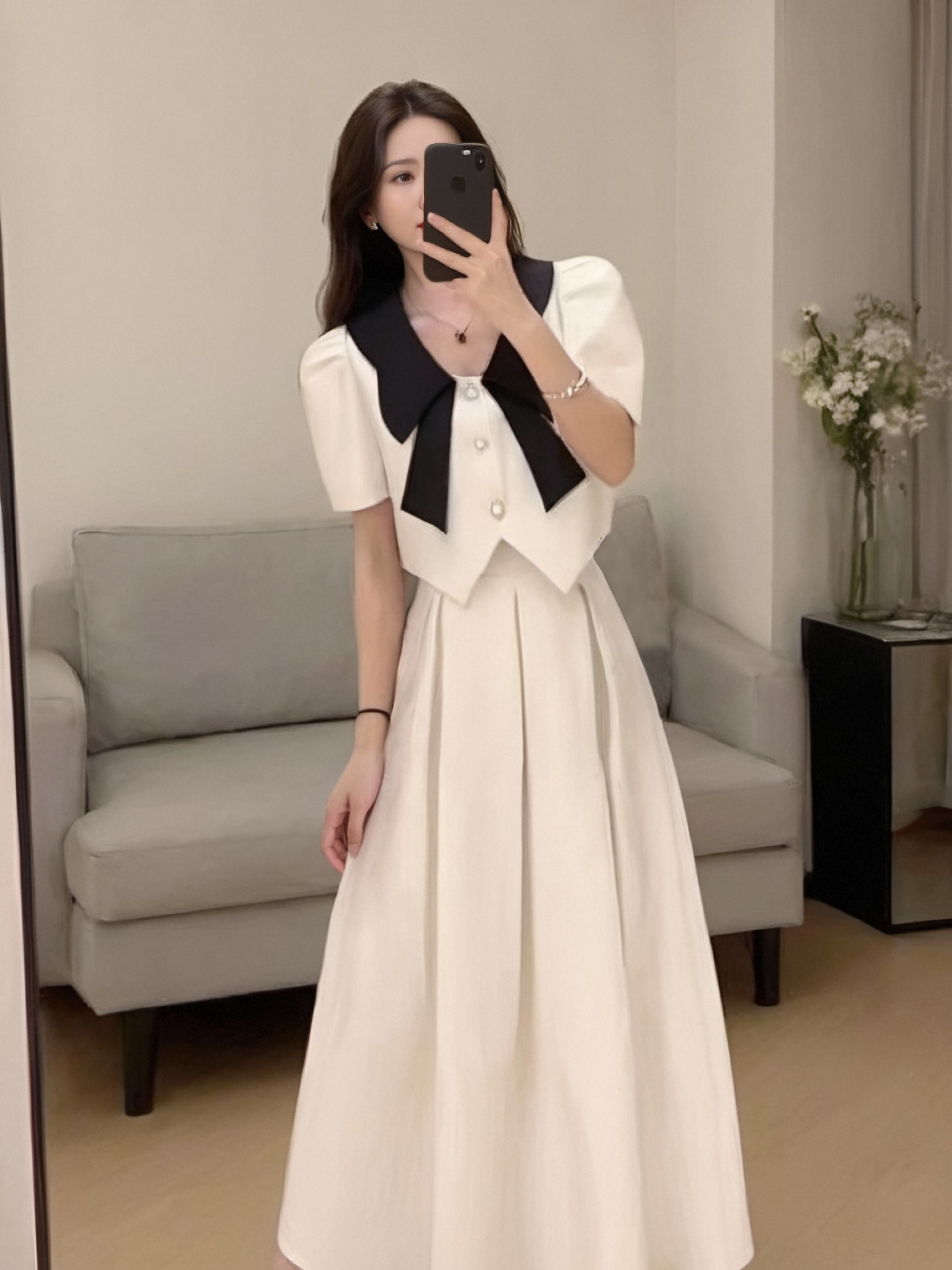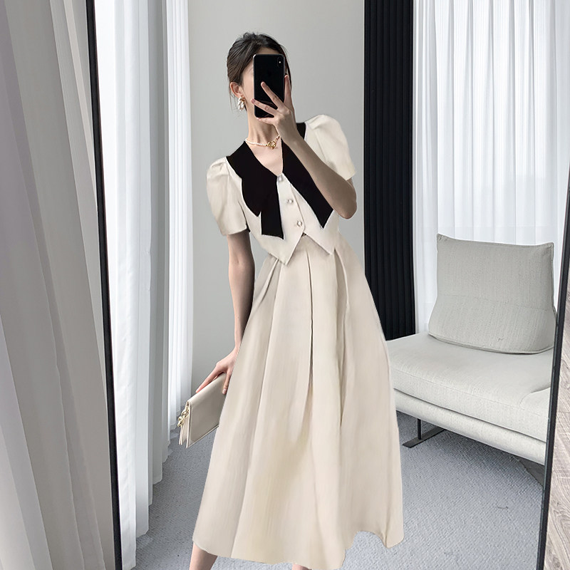 撞色短款 新款 外套高腰裙子1213 小香风连衣裙2026夏季 两件套泡泡袖
