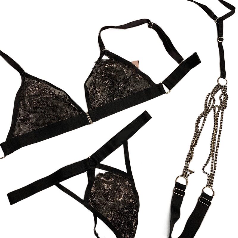 维多利亚纯欲蕾丝镂空透视内衣女性感禁欲系无钢圈辣妹文胸罩套装