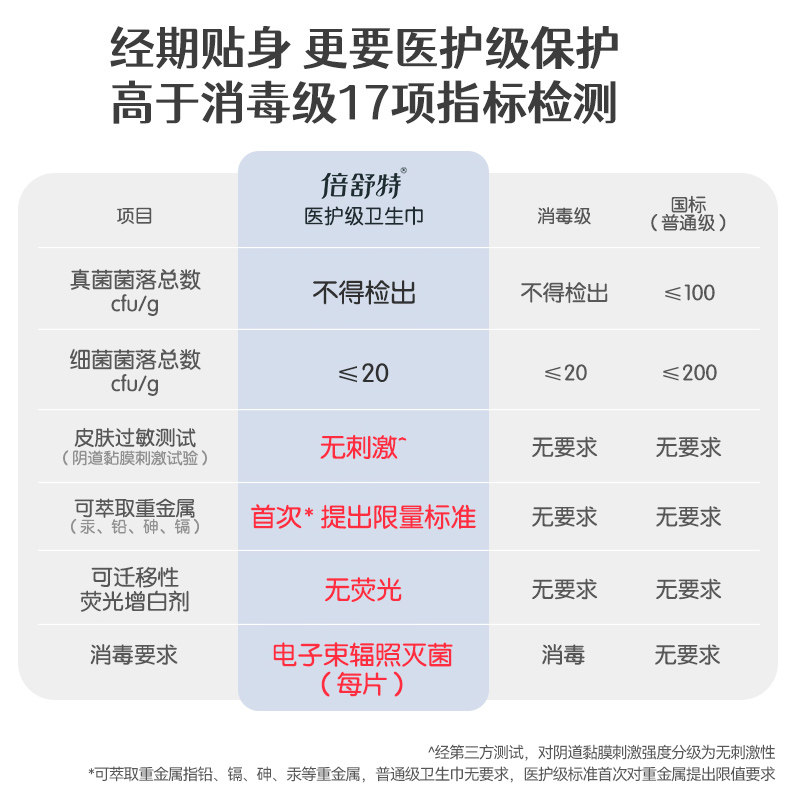 倍舒特医护级卫生巾日用棉柔超薄290mm7星自净超吸收姨妈巾组合女