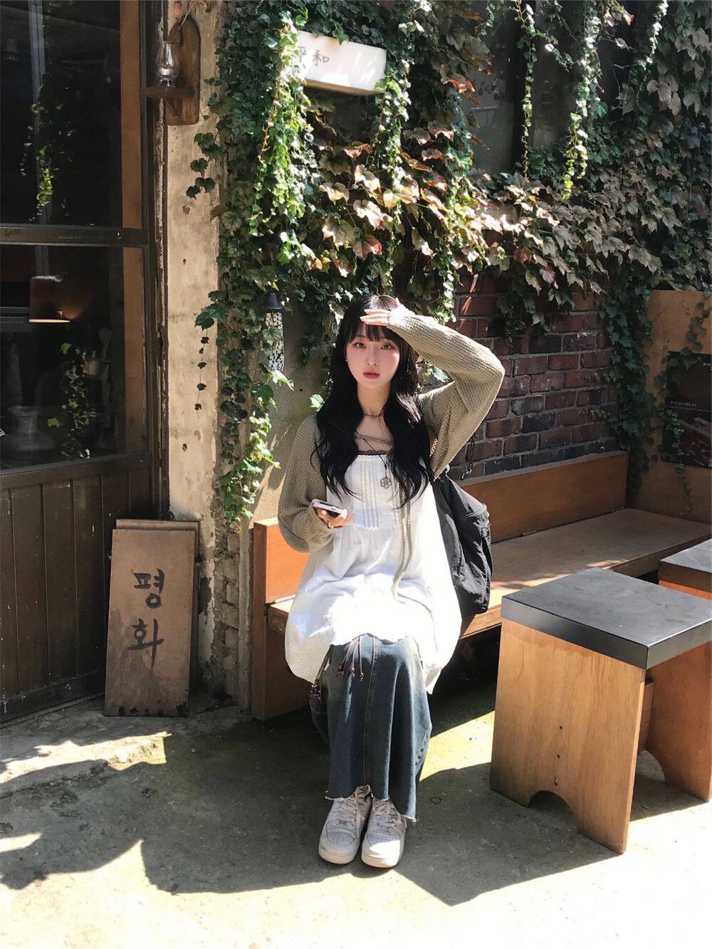 夏日小记 日系学院风甜美奶油白色吊带内搭裙 少女蕾丝花边连衣裙
