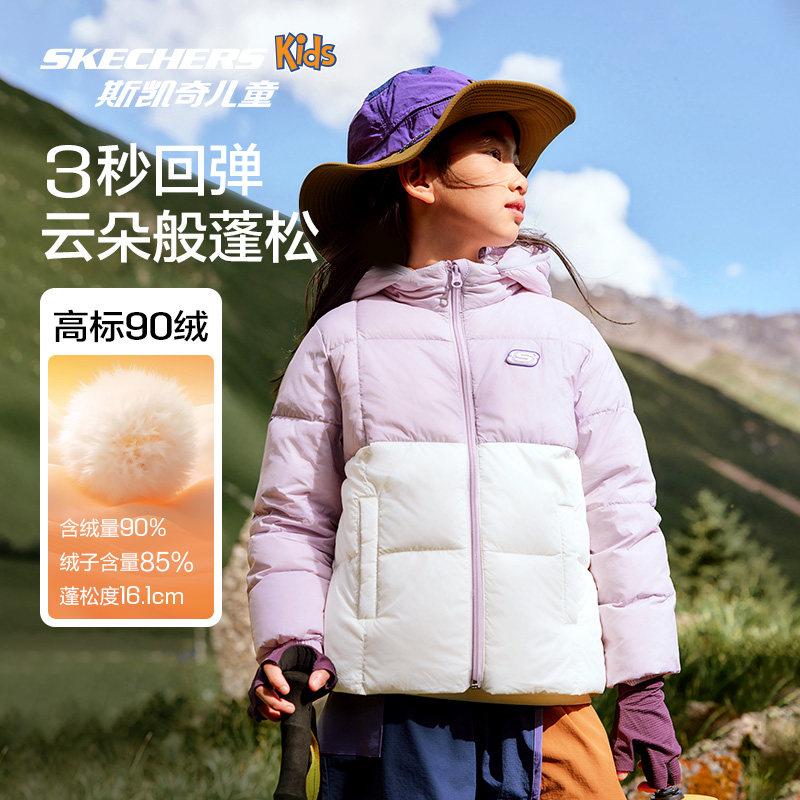 Skechers斯凯奇童装 男女童三防羽绒保暖外套 儿童轻薄羽绒服冬季