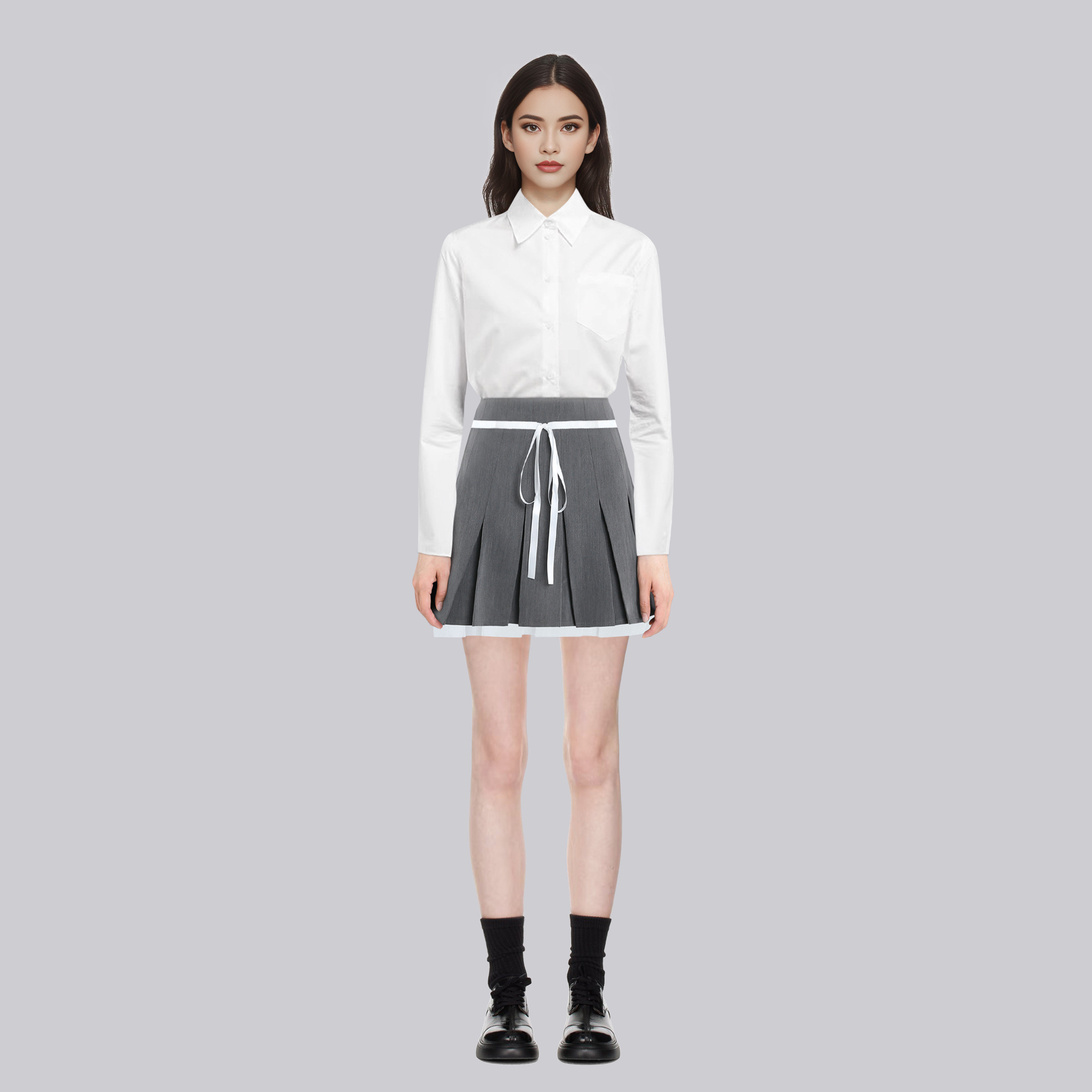 TB学院风假两件百褶裙女夏tb韩版 A字型高腰显瘦减龄百搭小众短裙