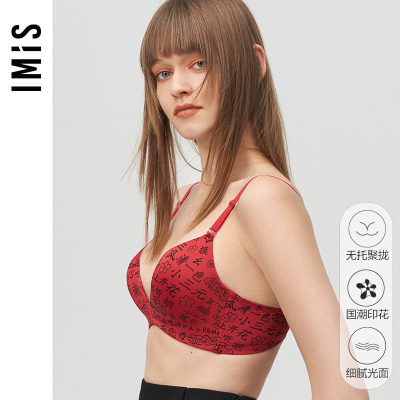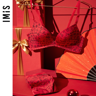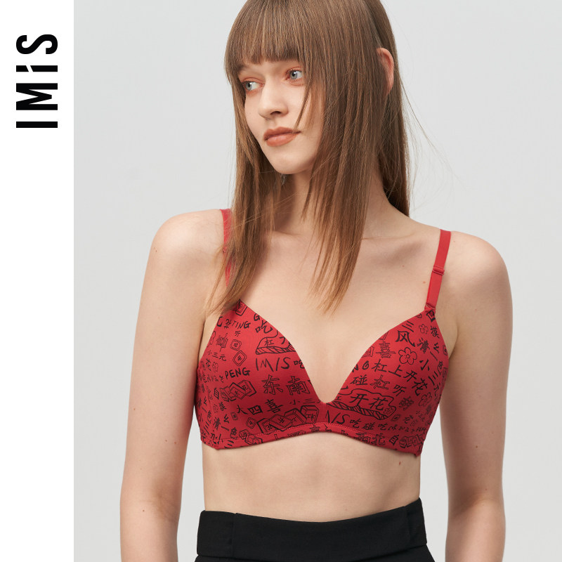 爱美丽IMIS内衣无钢圈国潮麻将印花红品蝴蝶海绵文胸IM17BGD1
