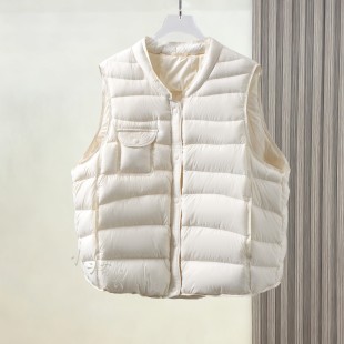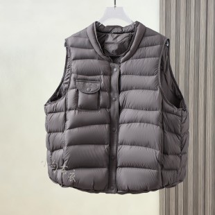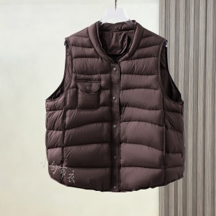 冬季 新简约白鸭绒立领羽绒服马甲女文艺复古盘扣马夹背心百搭外套