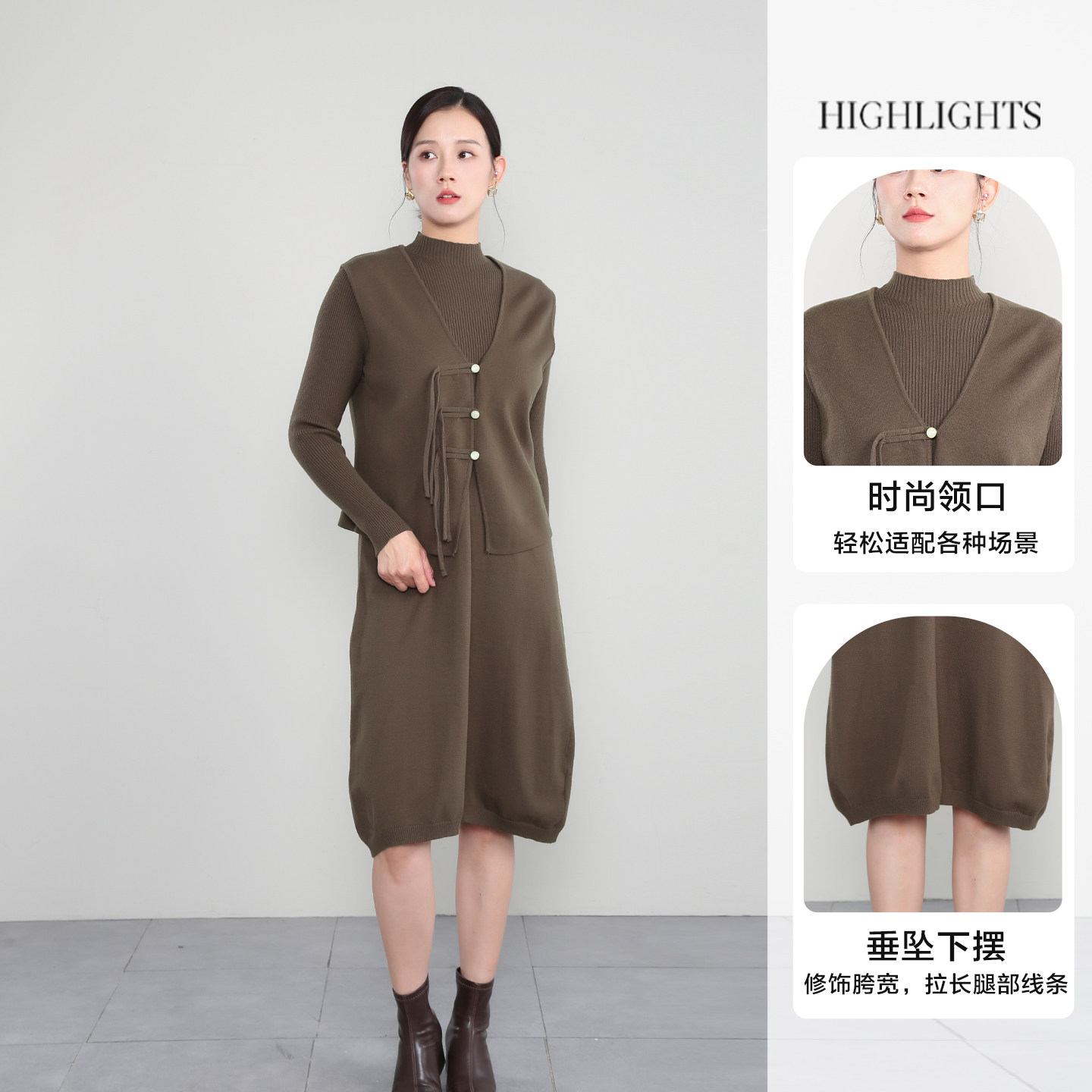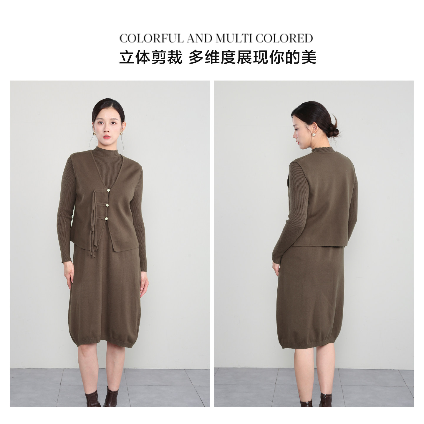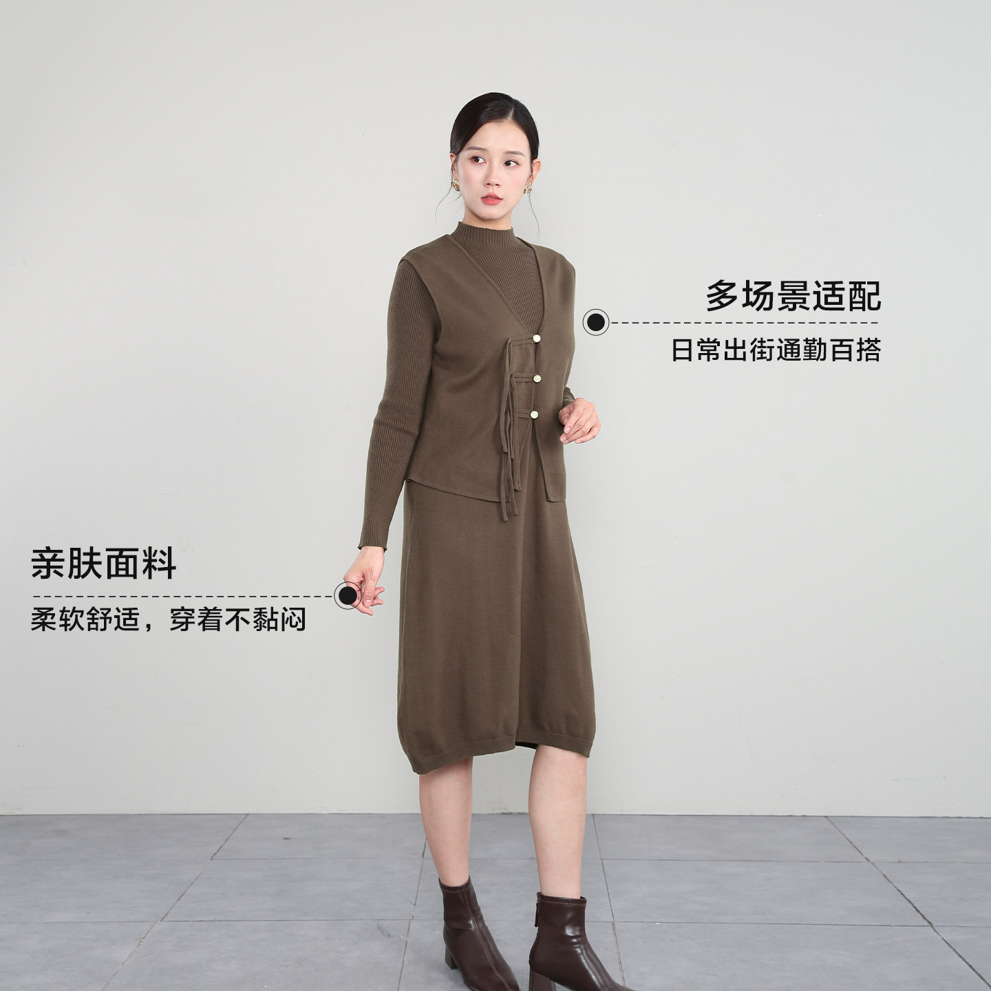 国风背心两件套裙子 新中式 科尚半高领针织连衣裙女2025冬季 新款