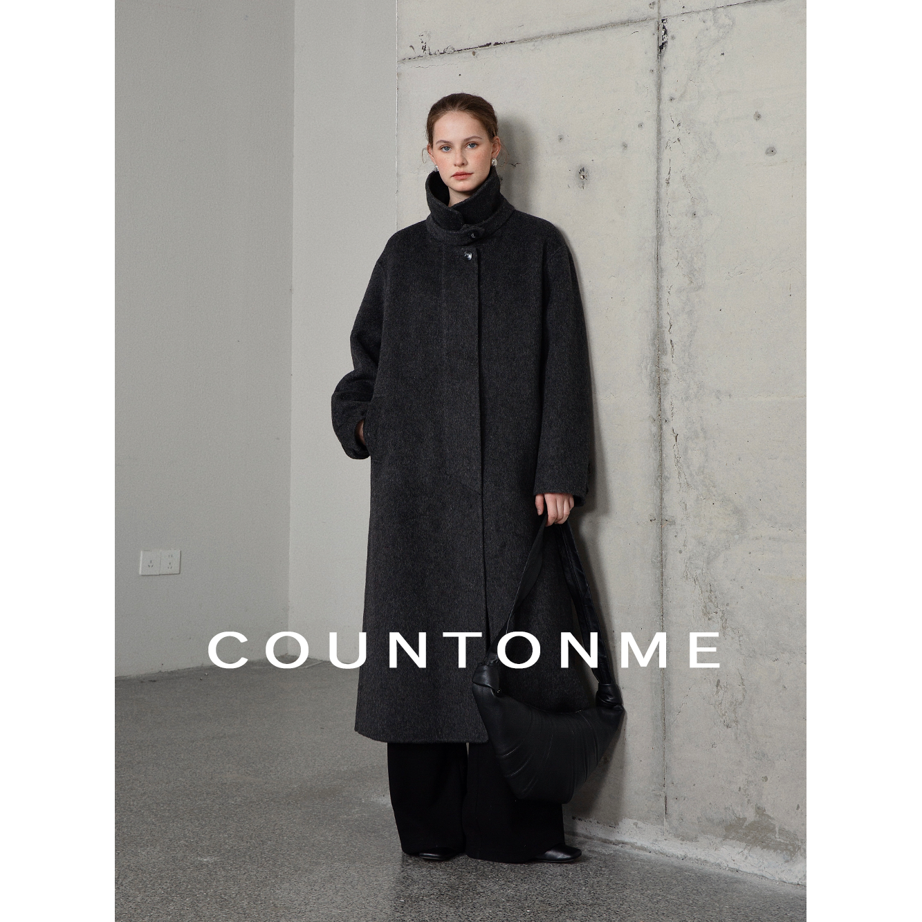 COUNTONME 慵懒松弛感绵羊毛双面呢廓型立领大衣外套 长期主义
