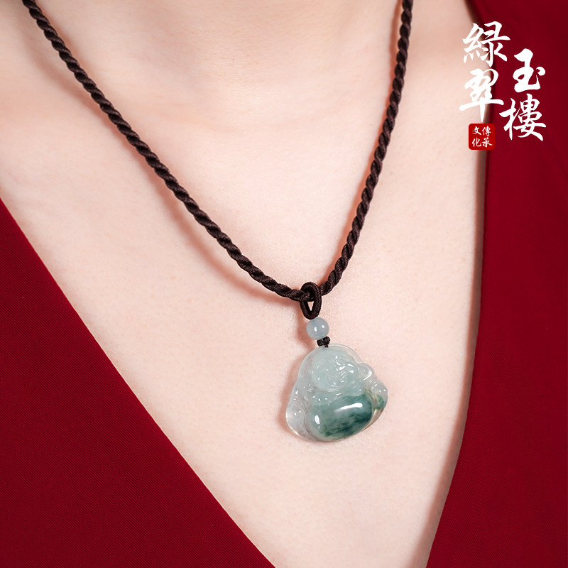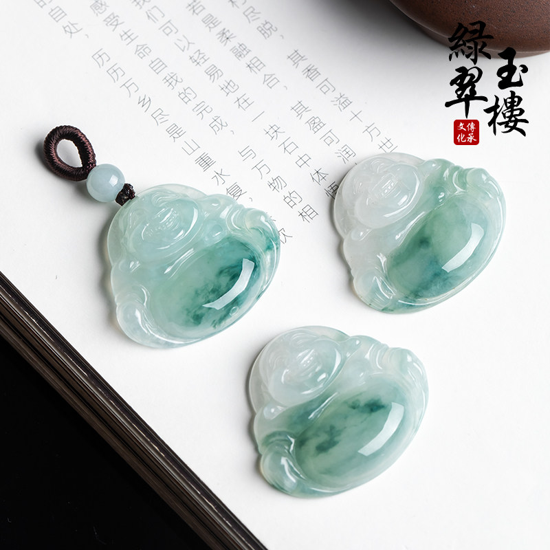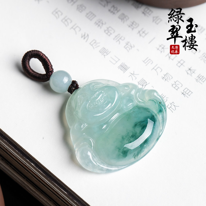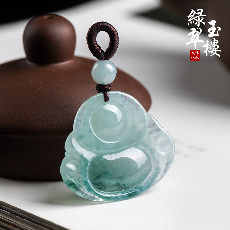 绿翠玉楼天然翡翠吊坠女玉佛冰糯种飘花佛公玉坠笑佛挂件弥勒佛