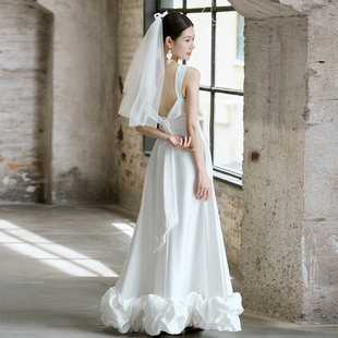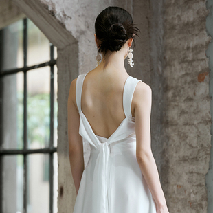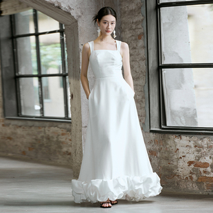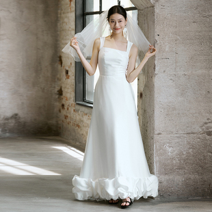 之既吊带绑带轻纱礼服婚礼晨袍蓬蓬裙领证白裙法式 旅拍轻婚纱重工
