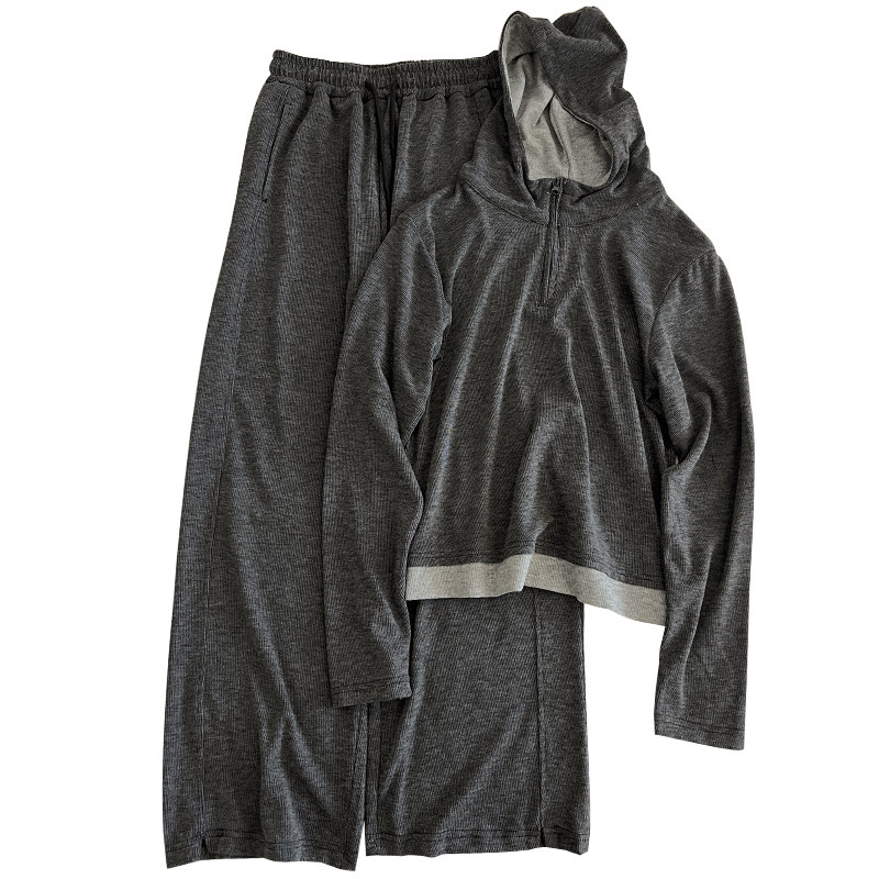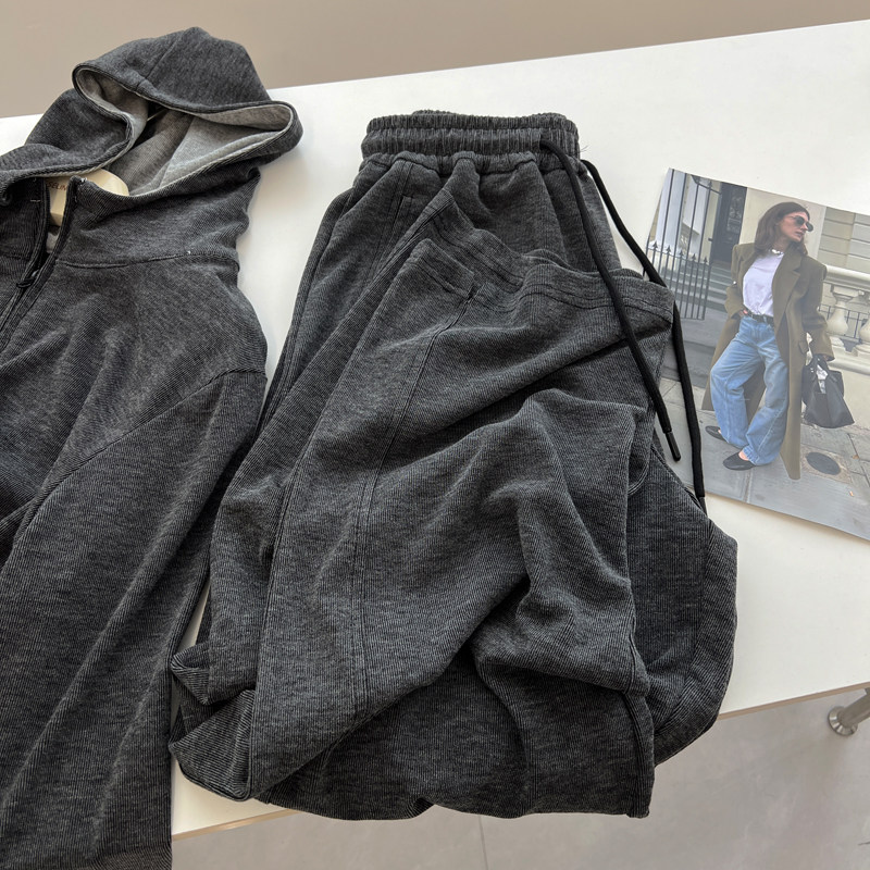 秋季 女宽松连帽套头卫衣直筒运动休闲裤 洋气复古运动休闲套装 韩版