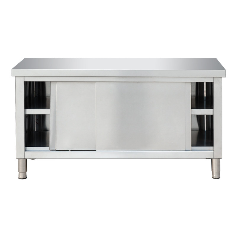 不锈钢工作台厨房操作台面储物柜切菜桌子带拉门案板商用专用烘焙