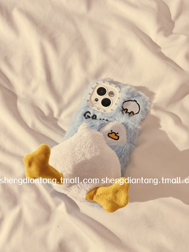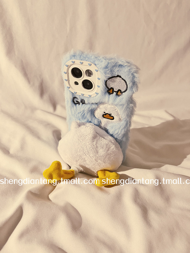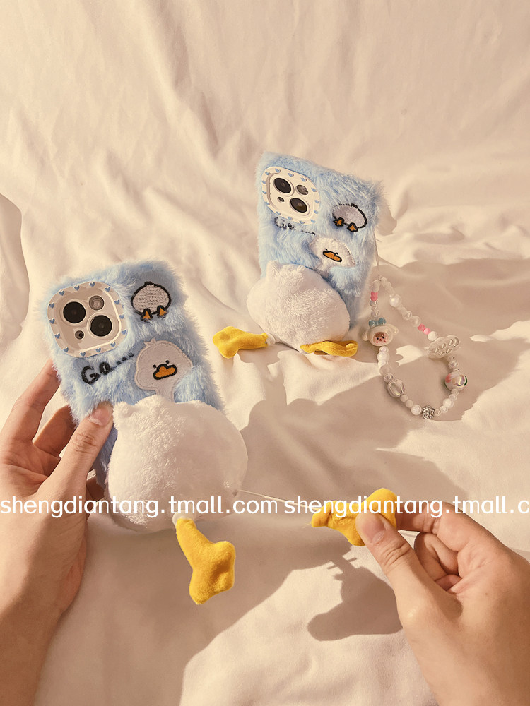 可爱鸭屁屁旋转脚丫适用iphone15ProMax手机壳苹果14新款 14promax硅胶保护套链条 15pro毛绒13秋冬12创意女款