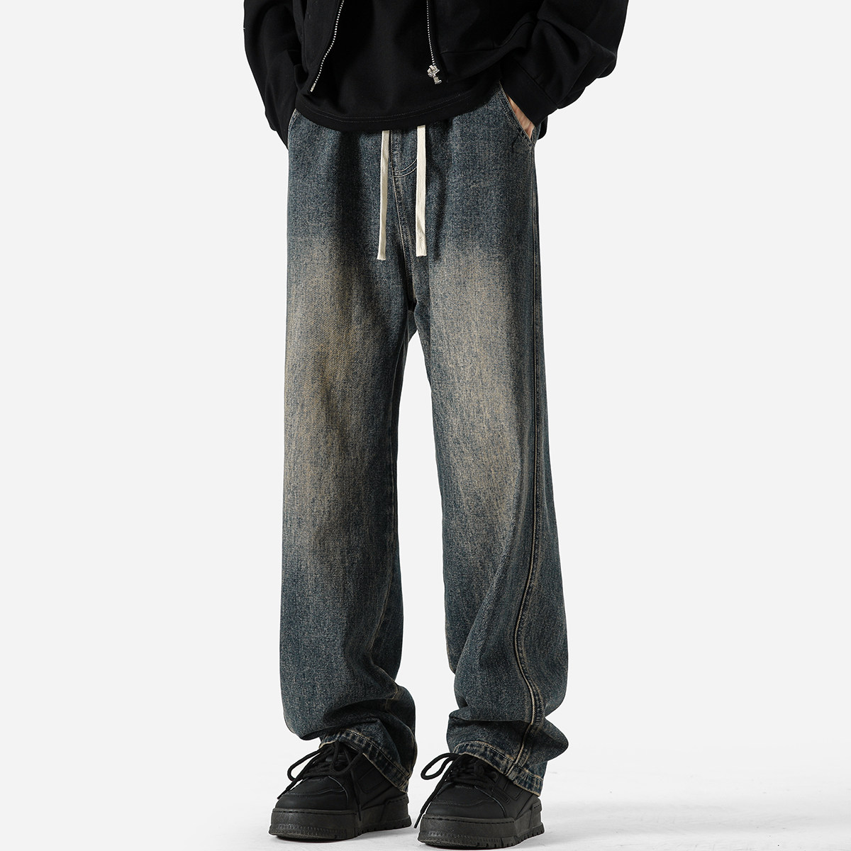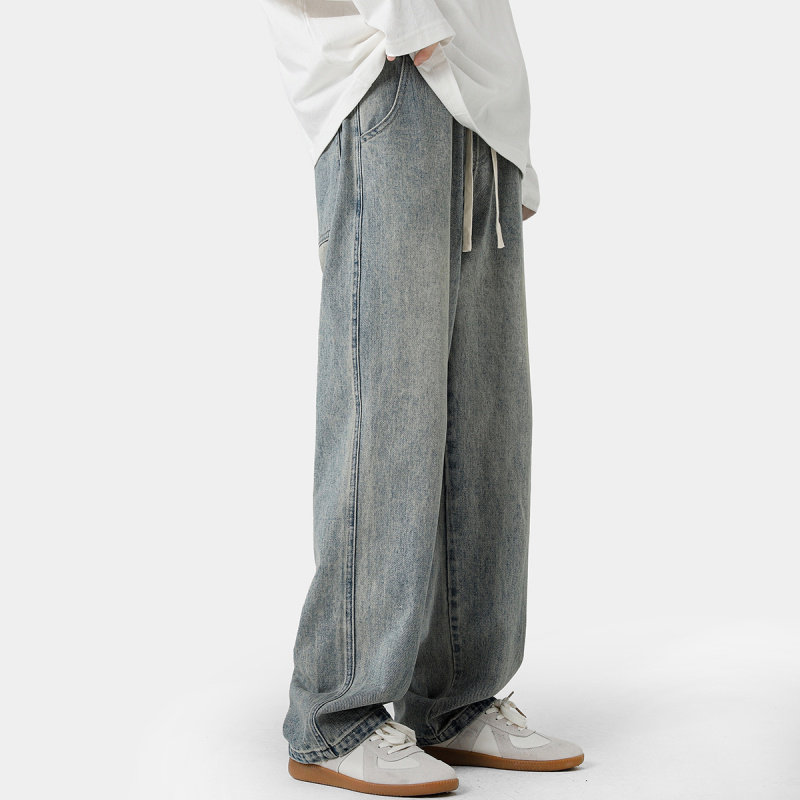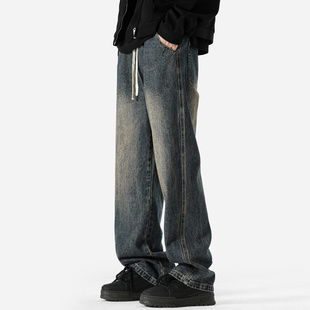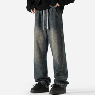 子高街复古蓝水洗垂感长裤 XWWF潮牌牛仔裤 宽松直筒裤 美式 男春秋款