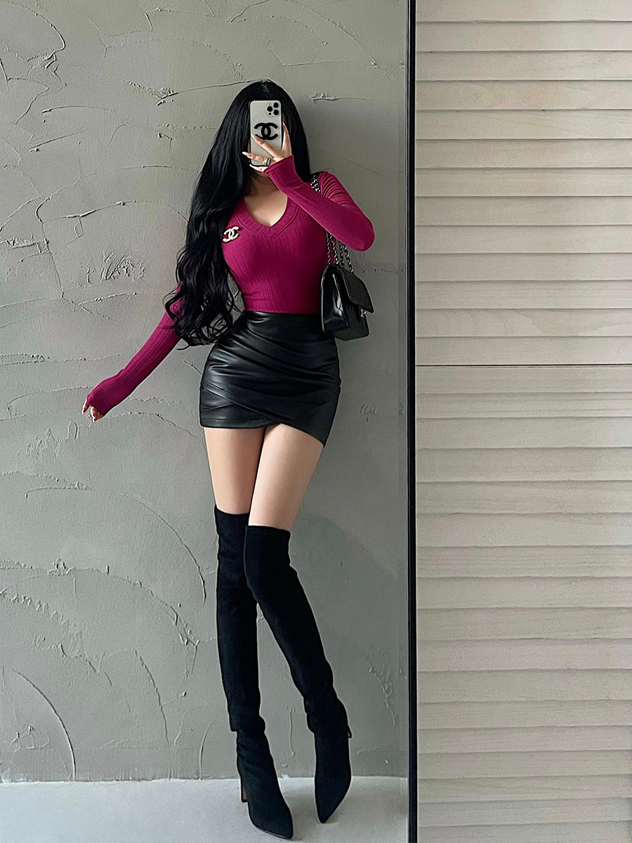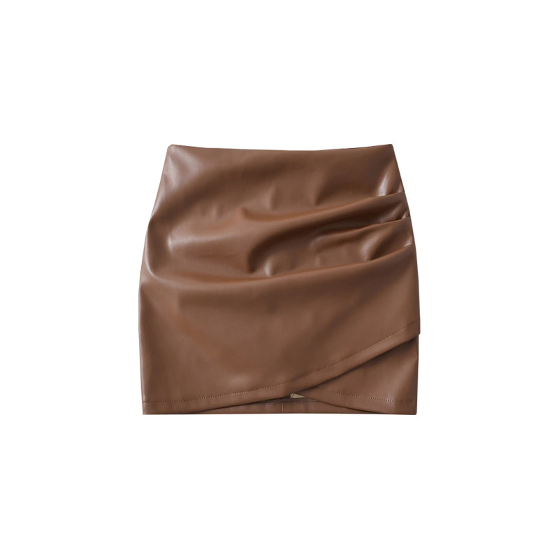 YoungGirlDay纯欲辣妹性感高腰显瘦防走光褶皱包臀pu皮半身裙短裙