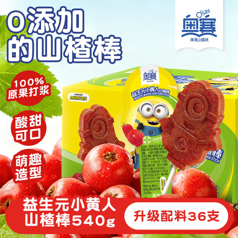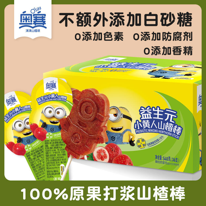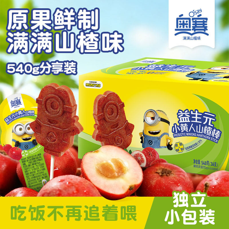 奥赛小黄人山楂棒棒糖儿童休闲无防腐零食健康单独立包装 单盒36支