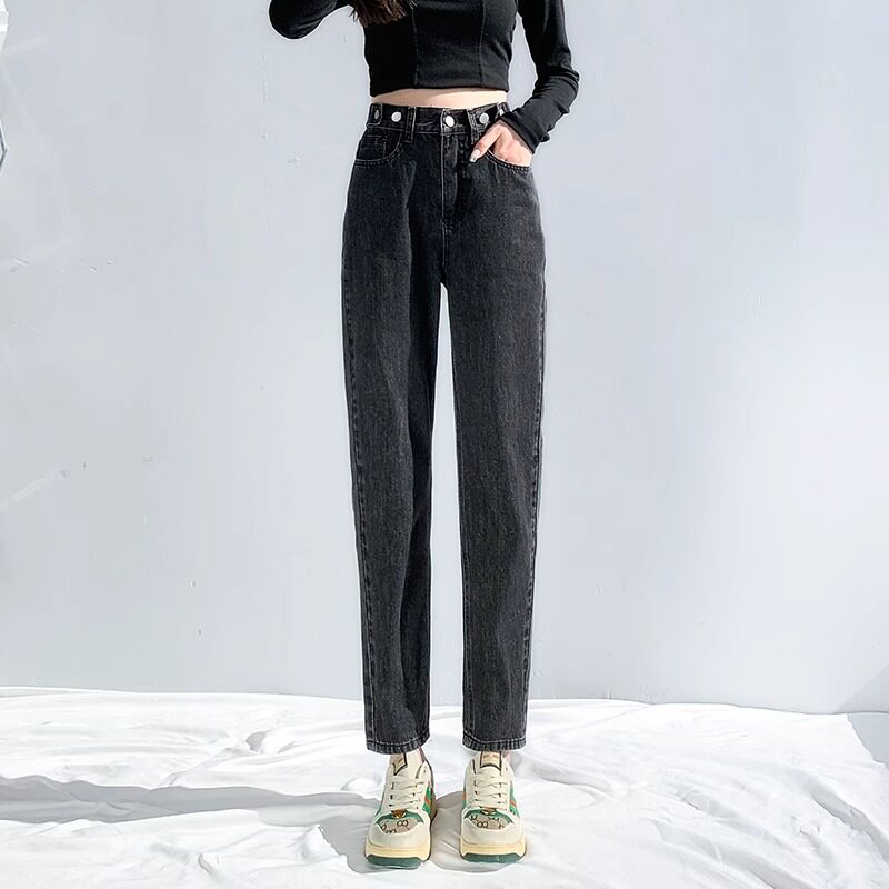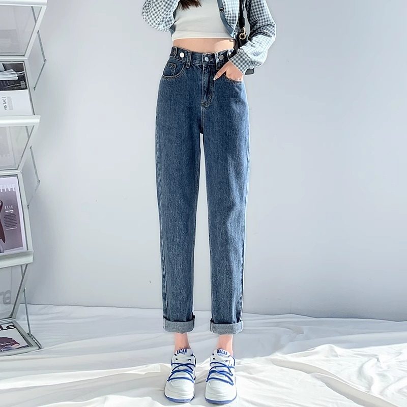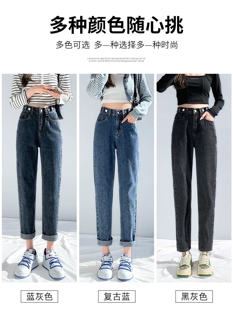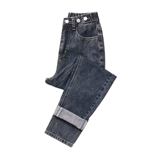 松紧高腰宽松显瘦遮胯萝卜老爹裤 秋冬加绒哈伦牛仔裤 女2023年新款