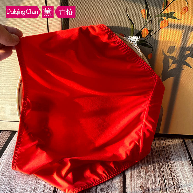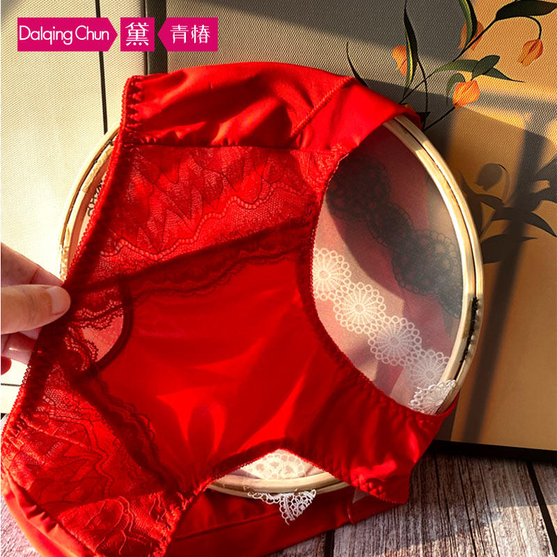 结婚红色本命年品牌女士内裤 轻奢高极浪漫蕾丝拼牛奶丝中腰包臀