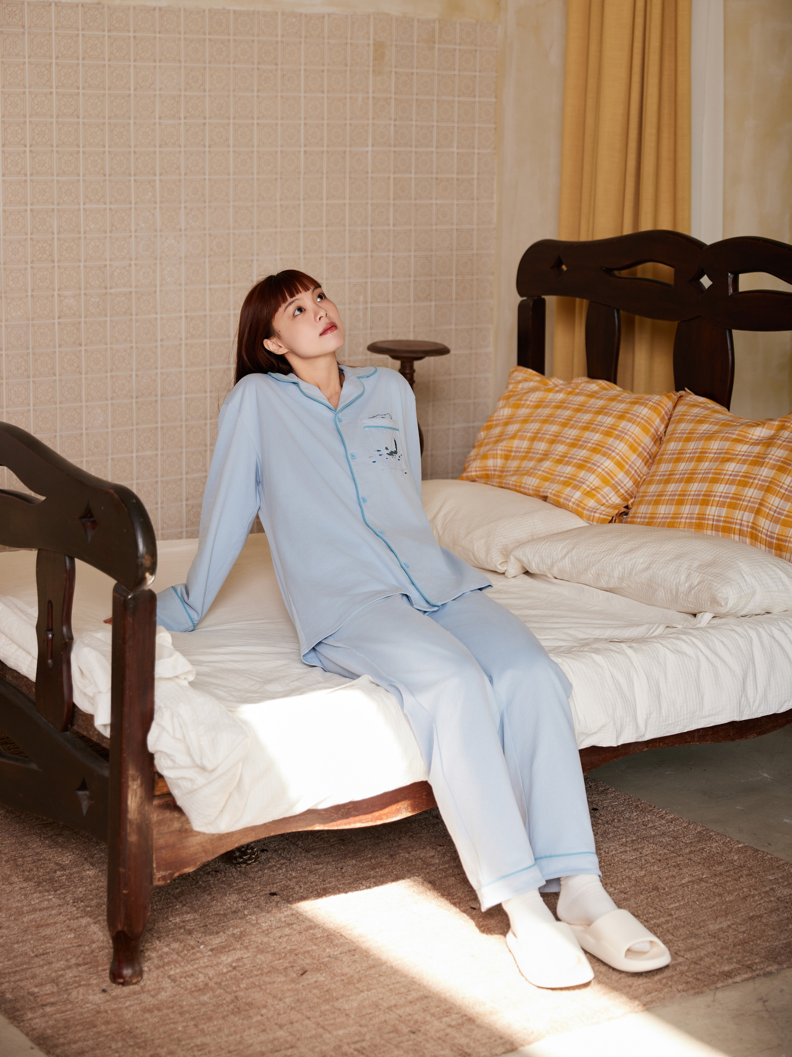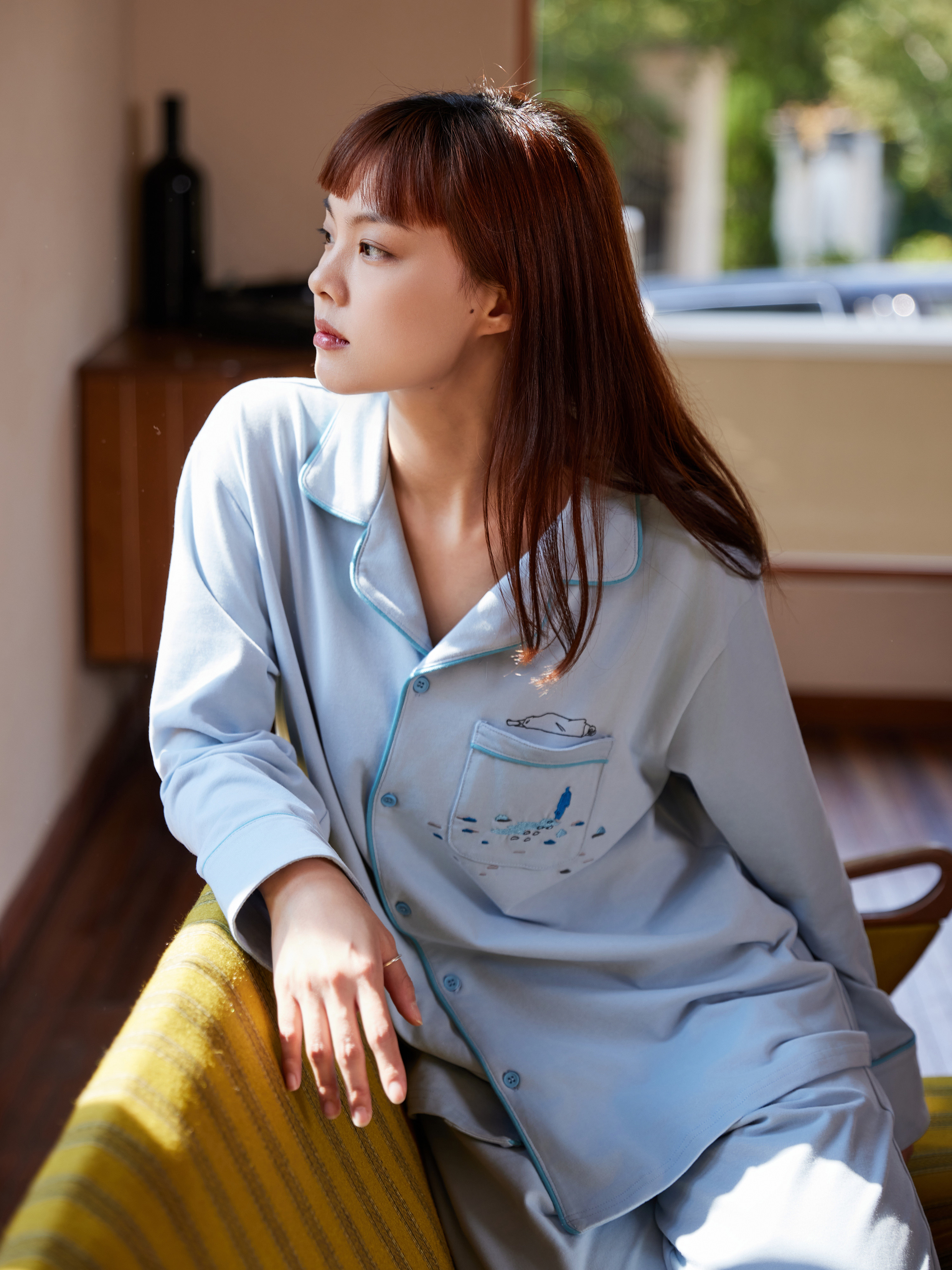 睡衣春秋季 长袖 女款 简约纯棉家居服套装 两件套 2025新款 三号黑店