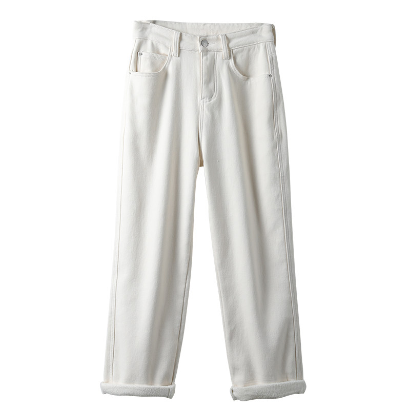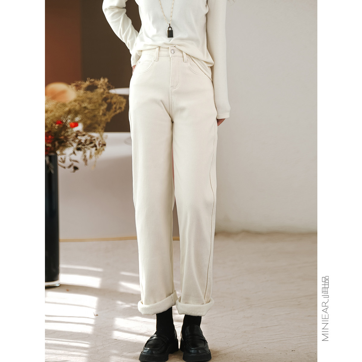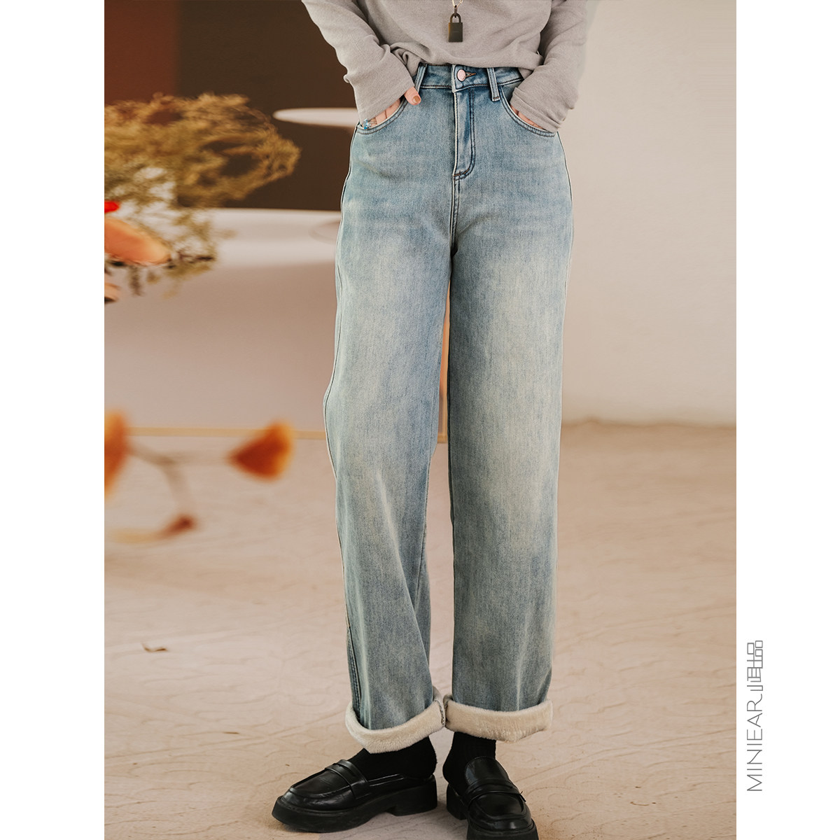 宽松显瘦直筒裤 加绒加厚胖mm大码 子 女梨形身材冬季 浅色阔腿牛仔裤