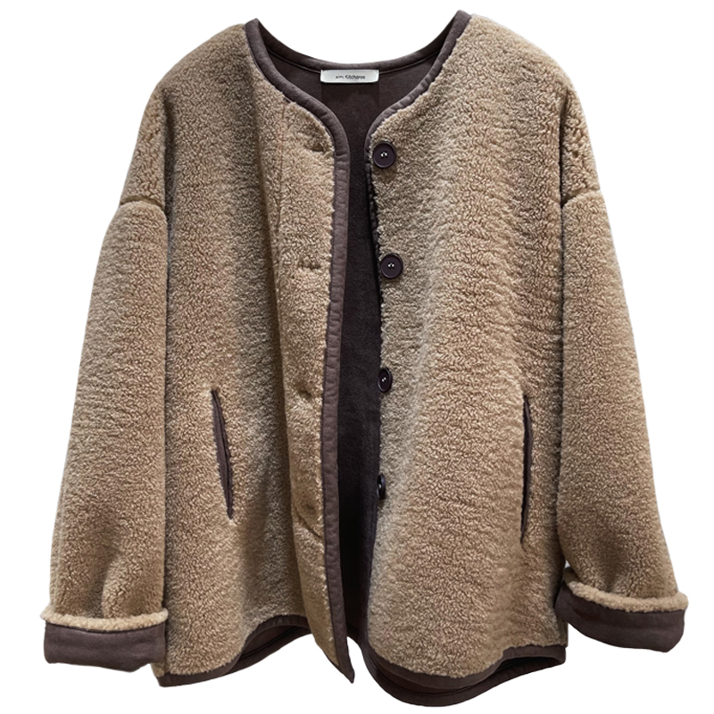 外套加厚韩系皮毛一体上衣 高密仿羊羔毛拼色冬季 细米定制 自留款