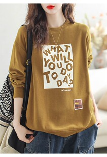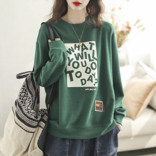 韩版 纯棉长袖 宽松遮肚显瘦百搭T恤打底衫 新款 上衣潮 卫衣女春秋季
