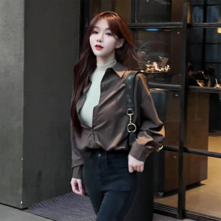 长袖 卡卡女装 格调美拉德设计感拼接衬衣假两件衬衫 秋冬季 官方正品