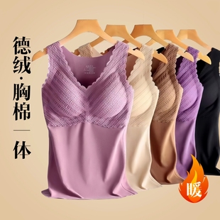磨毛保暖背心女2025冬新款 带胸垫一体无痕吊带打底内衣加绒加厚