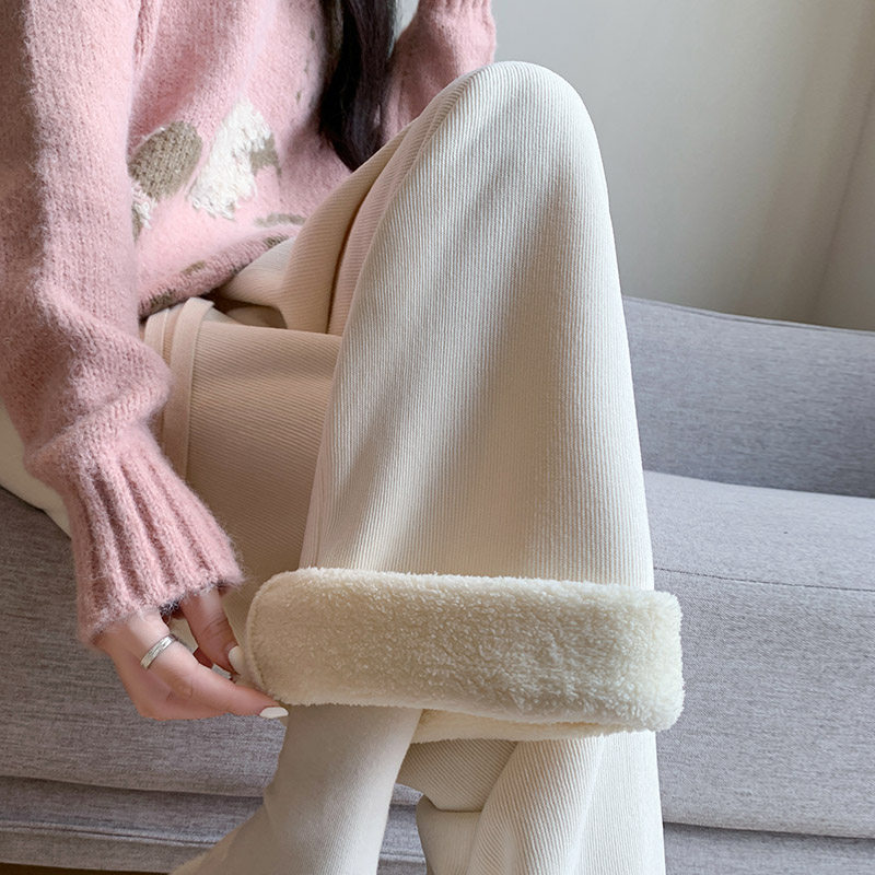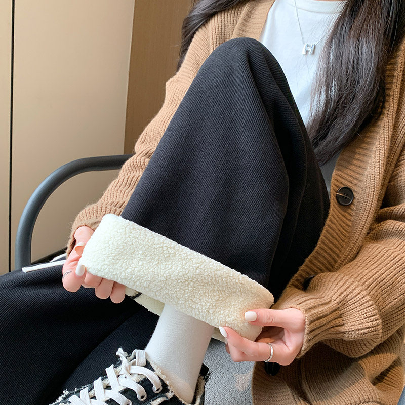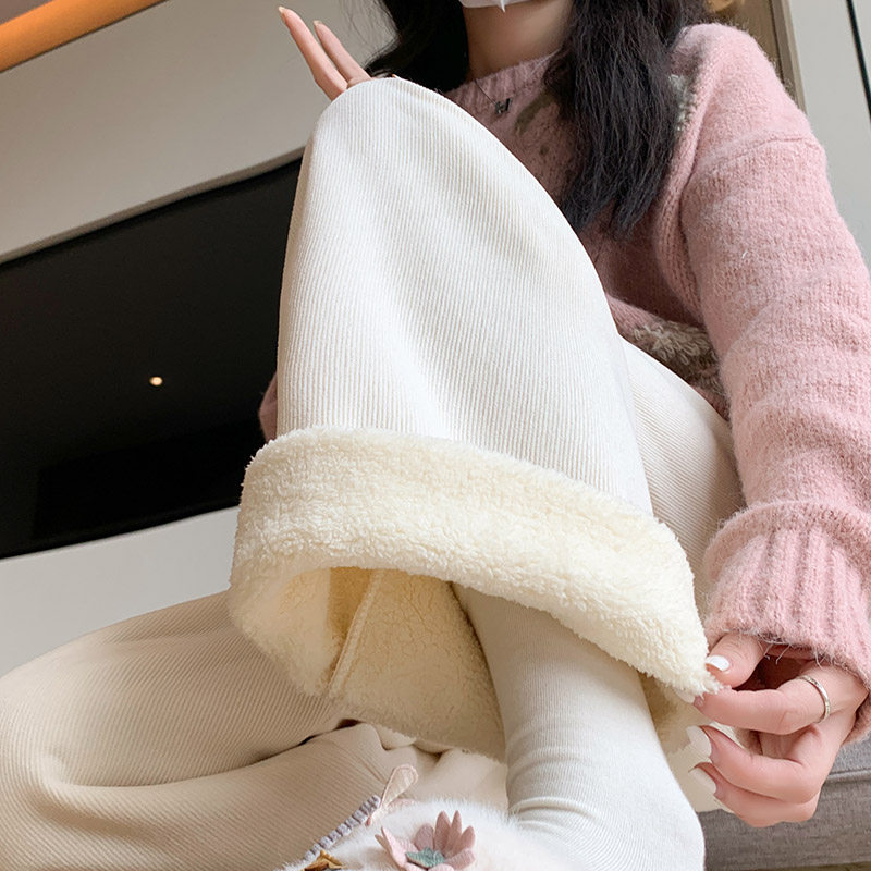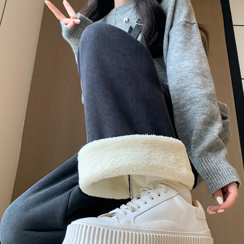 子 高腰垂感加绒加厚保暖拖地灯芯绒裤 羊羔绒雪尼尔阔腿裤 女秋冬季