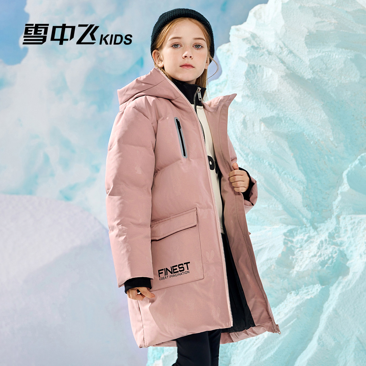 羽绒服 洋气男童中大童印花女童长款 雪中飞kids童装 儿童羽绒服冬季