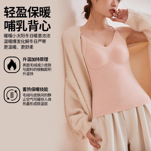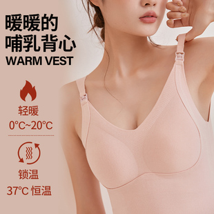 婧麒哺乳背心孕妇保暖吊带产后内搭喂奶免穿带胸垫内衣加绒秋冬款